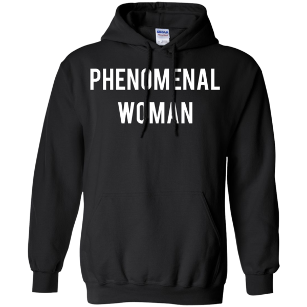 Feminist shirt: Phenomenal Woman in dark shirt. Tees, tank, hoodie, long sleeve available.