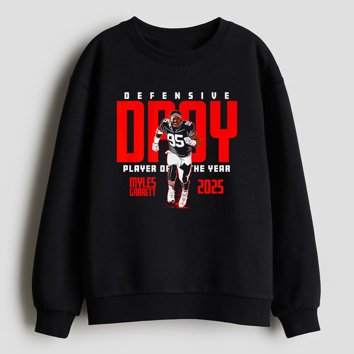 The 2025 Defensive Player of the Year Myles Garrett Shirt is a tribute to the 2025 Defensive Player of the Year, who won with an unanimous vote. This is not only a celebration of Garrett’s second DPOY award of his career, but also a commemorative item for a legendary season in which he broke the record with 23 sacks in a single season. Wearing this shirt means wearing Cleveland pride—honoring a true “monster” who fought nonstop and shined brilliantly even during a difficult season for the team.