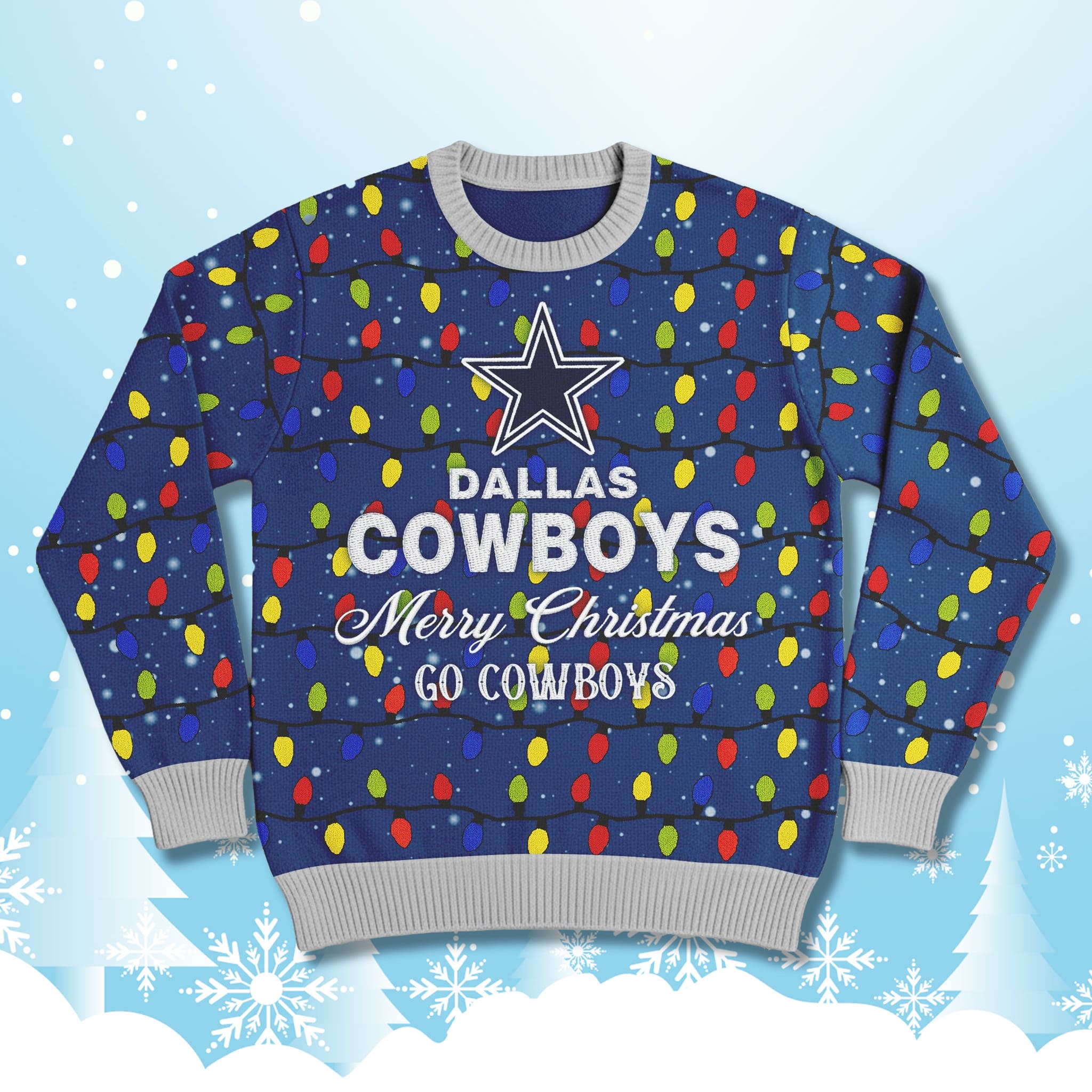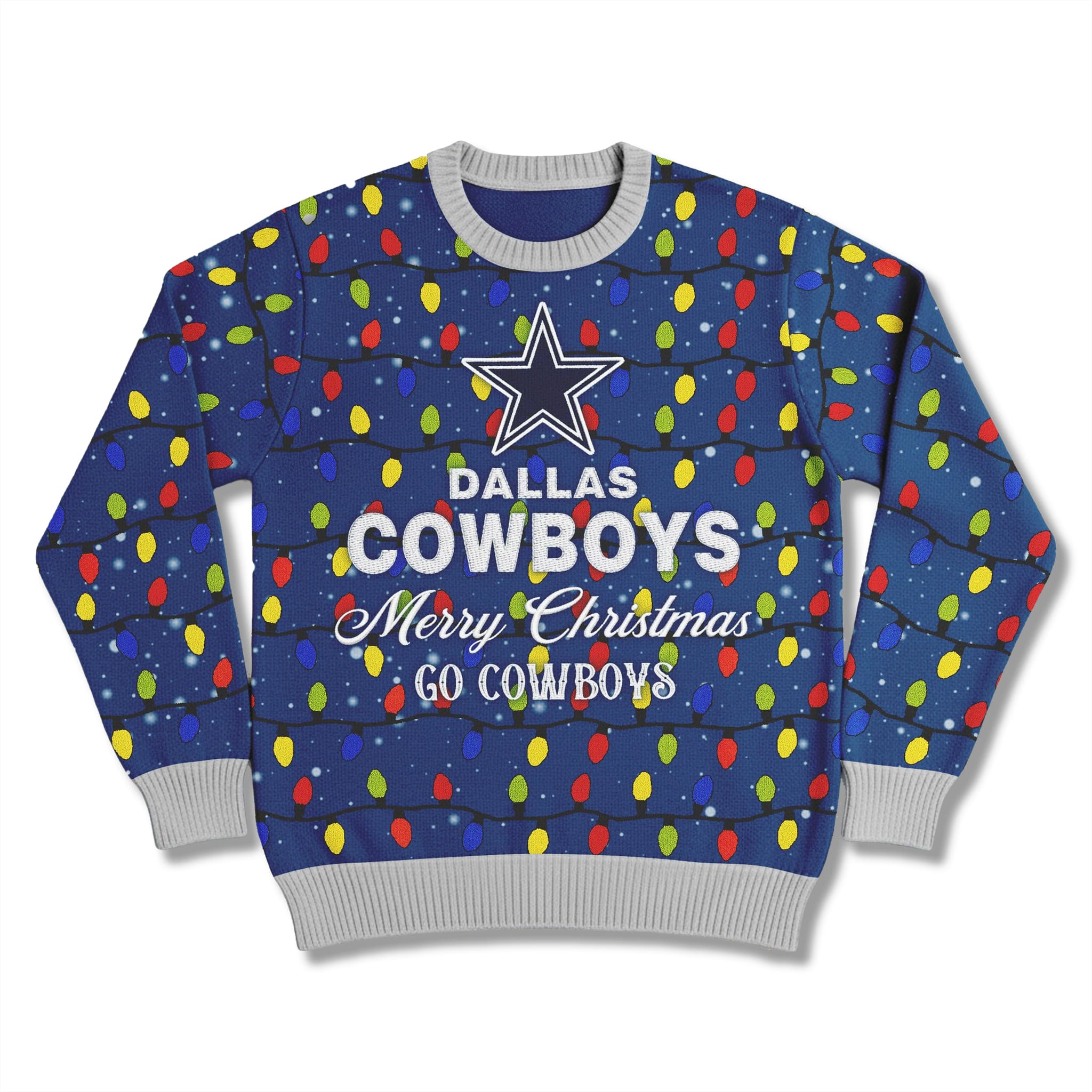 The sweater carries a cheerful holiday message from the club, with the phrase “Merry Christmas GO COWBOYS” expressing both celebration and team pride. It’s not only an outfit for Christmas parties but also a way to show loyalty to the Cowboys, bringing warmth and a sense of community to fans during the cold winter season.