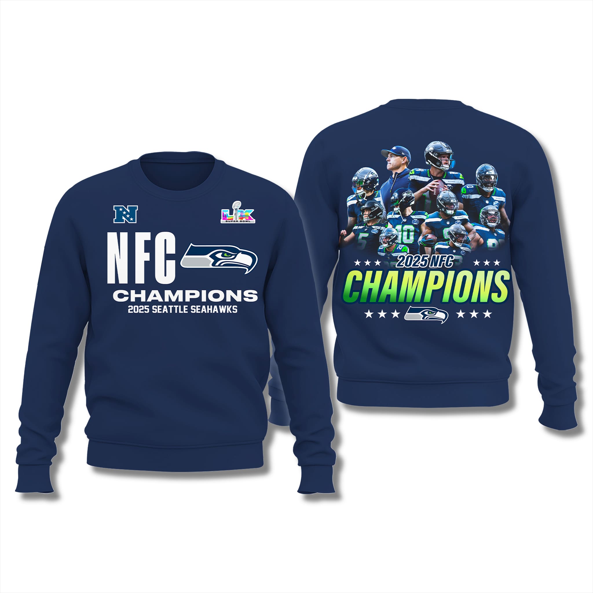 This Seahawks NFC Champions Sweatshirt 2025 is a special commemorative item for Seahawks fans, celebrating the 2025 NFC Championship victory when the team defeated the Rams 31–27 at Lumen Field. The win marked the fourth time the Seahawks claimed the NFC title, paving the way to SB LX against the Patriots and affirming the strength of their defense and resilient fighting spirit under head coach Mike Macdonald.