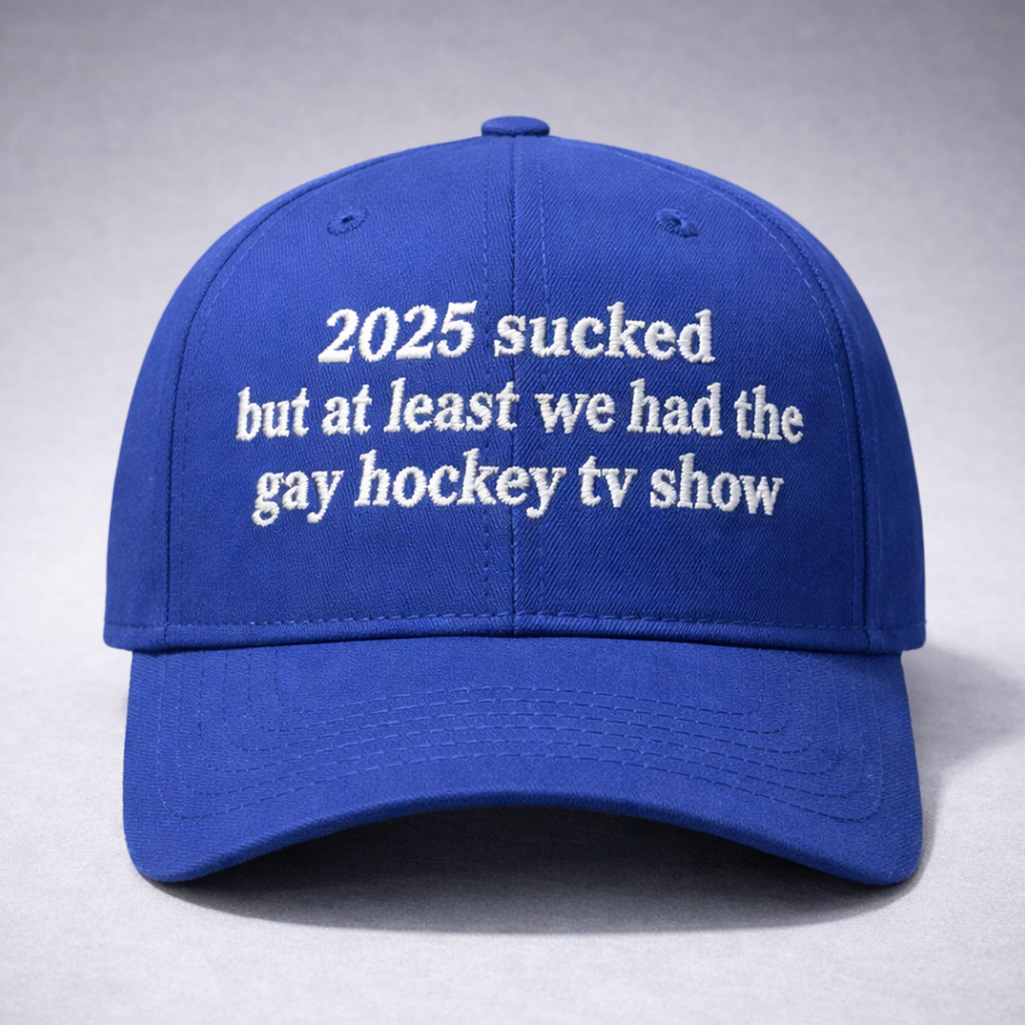 Close out 2025 in the coolest way possible! Don’t let the sadness of the old year weigh you down. Put on this hat and be proud that you survived 2025 and enjoyed unforgettable moments with the “gay hockey TV show.” Order today to spread this positive and humorous energy!