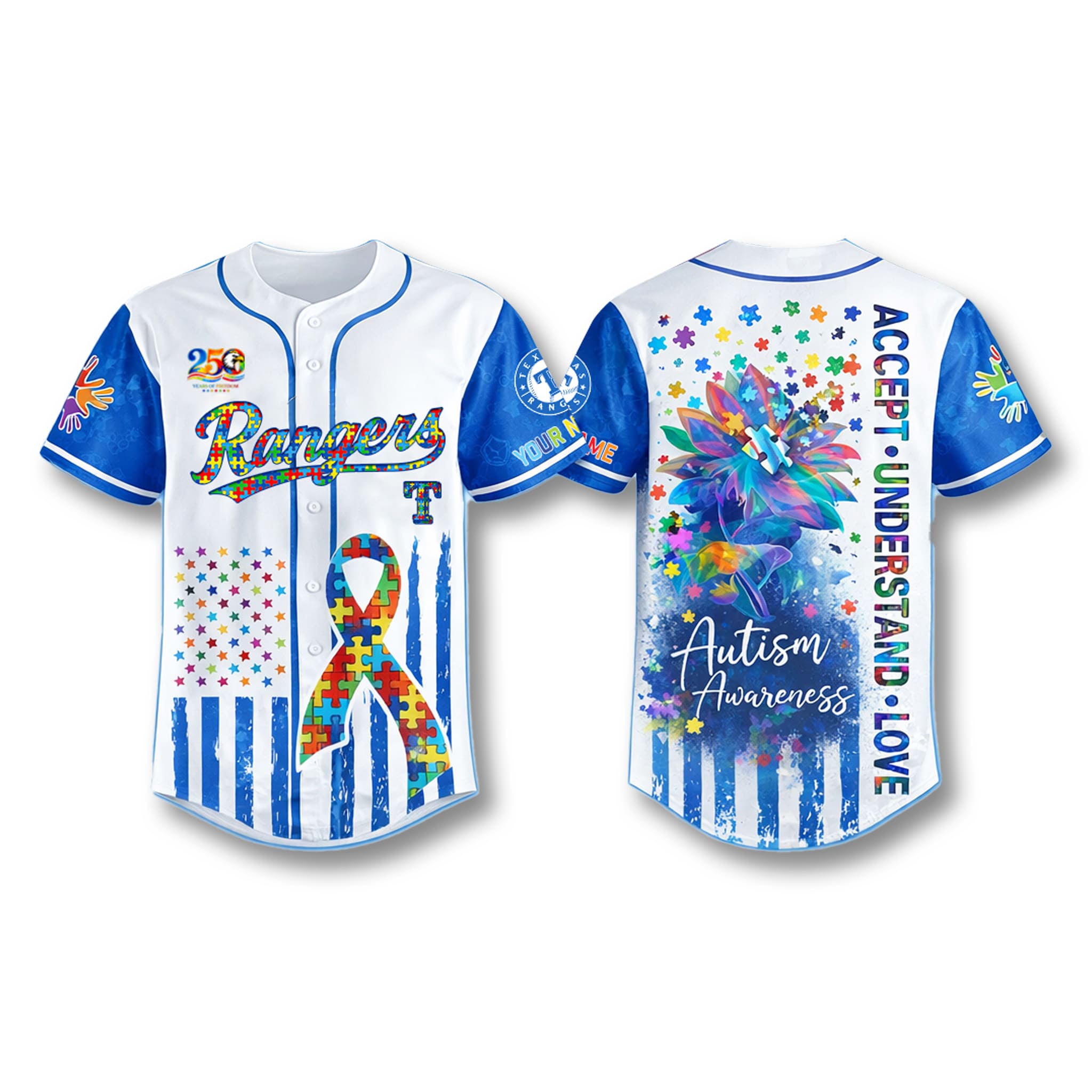 Get your Texas Rangers Autism Acceptance Month 2026 Jersey today to show both your love for Texas Rangers baseball and your support for the meaningful message of Autism Acceptance throughout the 2026 season. This is more than just a jersey – it is a piece meant to inspire.