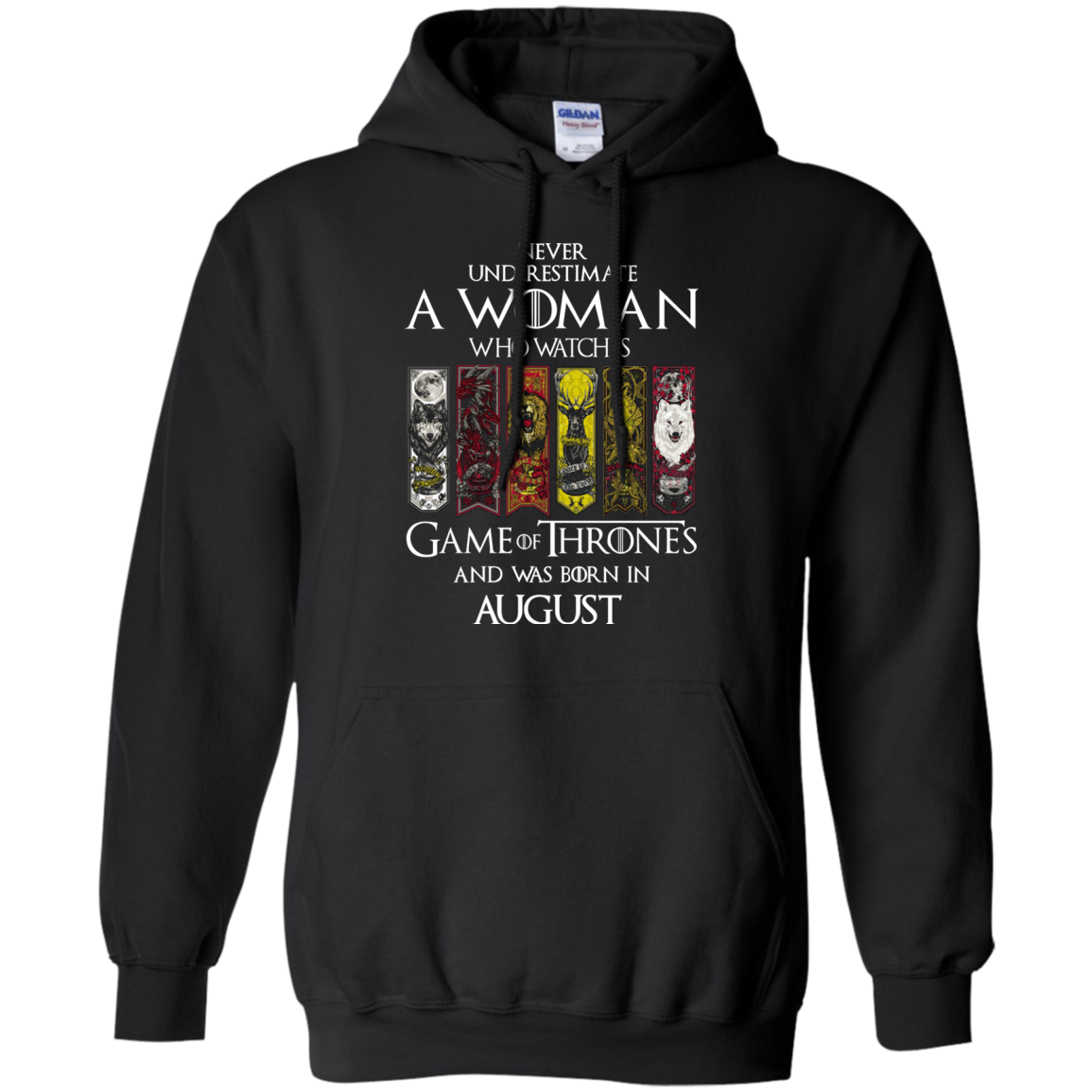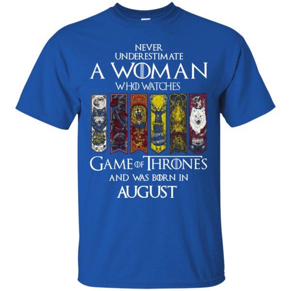 - Never underestimate a woman who watches Game of Thrones and was born in August t-shirt, hoodie, tank top…available.