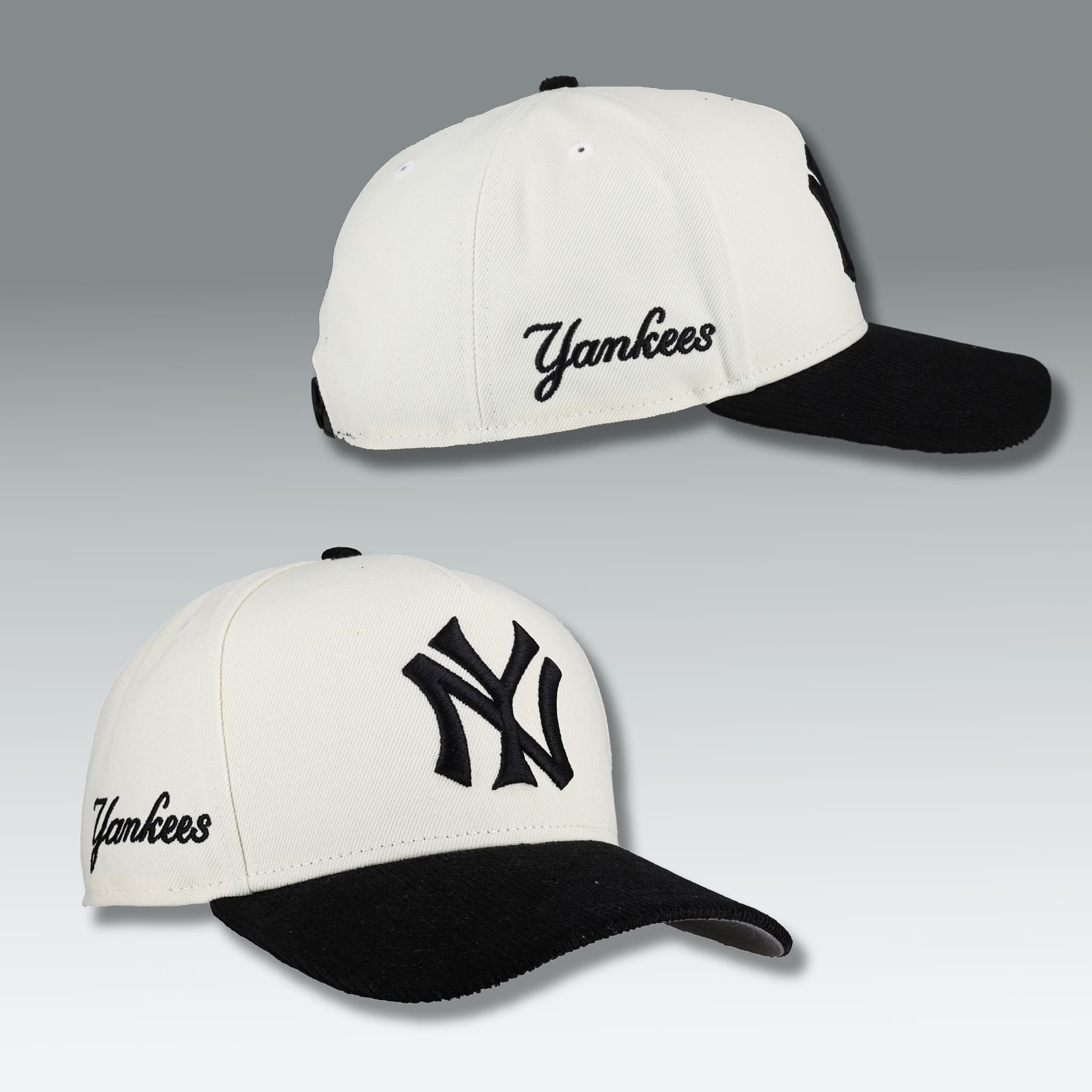 The hat features a clean off-white and black color combination, making it easy to style and suitable for various looks. The raised embroidered NY logo on the front creates a bold focal point, paired with a curved black brim that adds a dynamic and modern streetwear vibe.