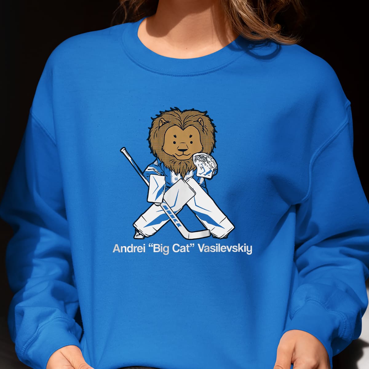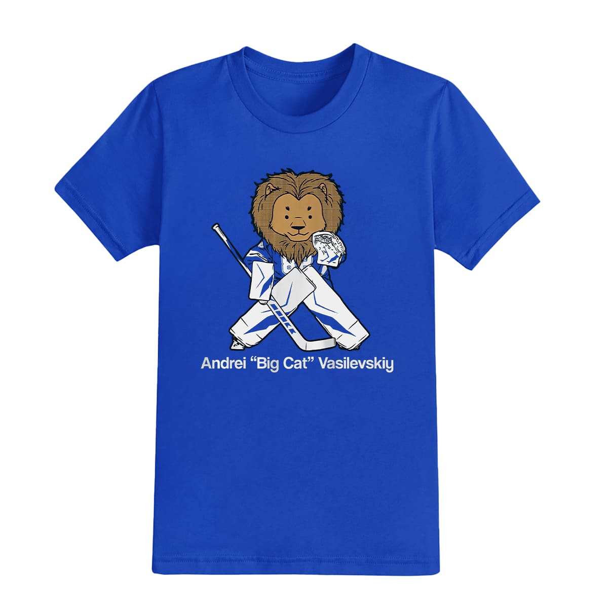 The Andrei Big Cat Vasilevskiy Shirt is inspired by the famous nickname “Big Cat” of Andrei Vasilevskiy — the elite goaltender of Tampa Bay. This nickname comes from his agile movement, quick reflexes, and predator-like presence, like a big cat guarding the crease. Vasilevskiy — born in Tyumen, Russia — loves big cats (especially lions), so the nickname quickly became an icon: every one of his goalie masks features a prominent lion, and fans often call him “Vasy” or “The Big Cat.”