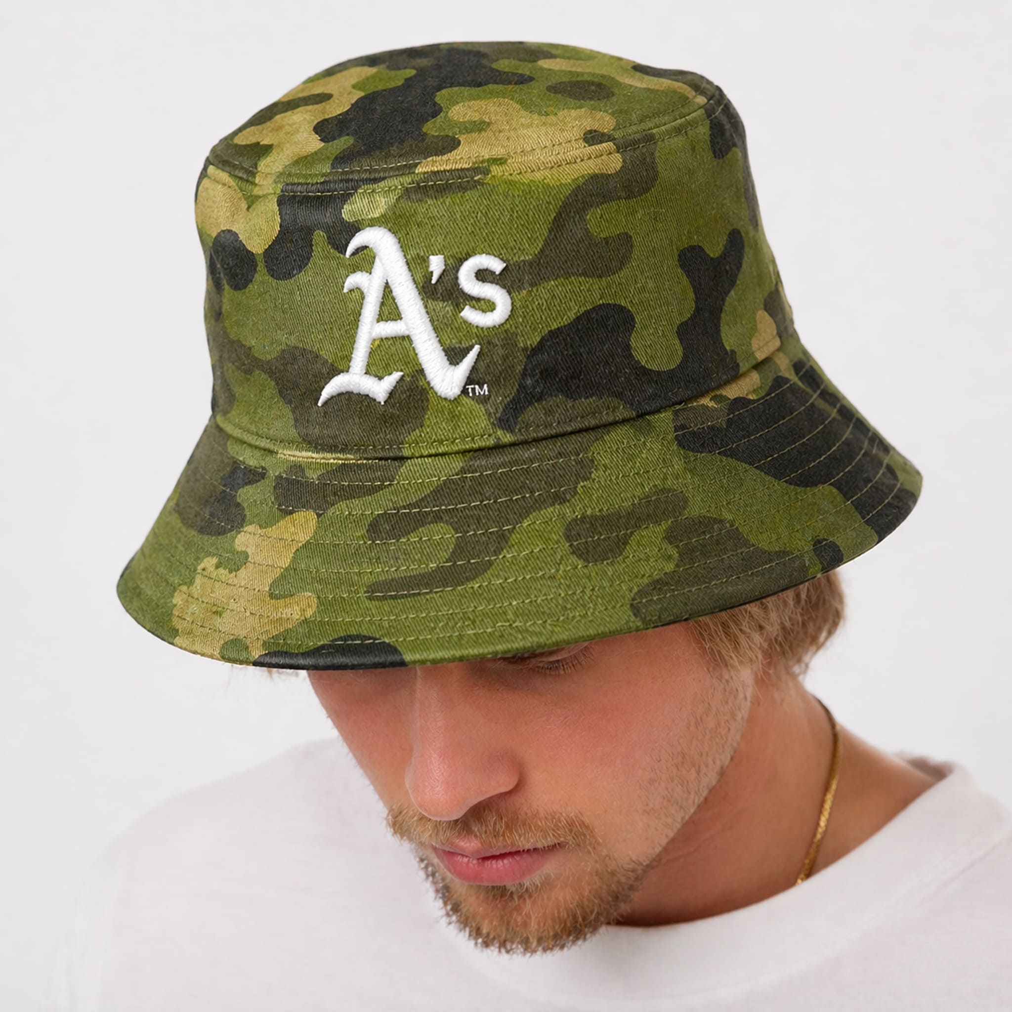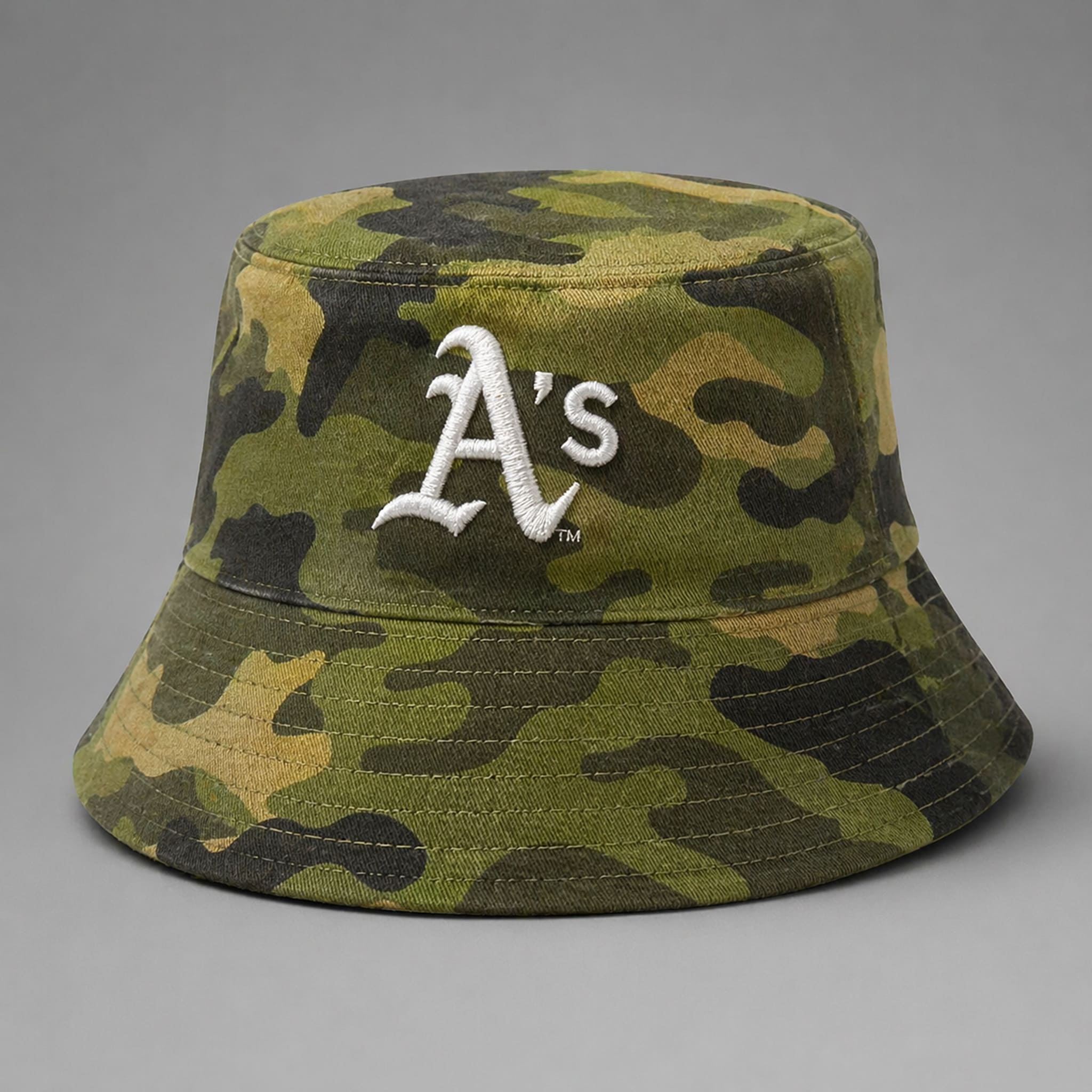 This limited-edition bucket hat is perfectly designed with a blend of tactical and classic style. It stands out with a camouflage pattern inspired by the military, combined with a sharply embroidered “A’s” logo on the front – a symbol of team pride. The military green and olive tones not only create a strong, bold look but also express deep respect for those who serve the country.
