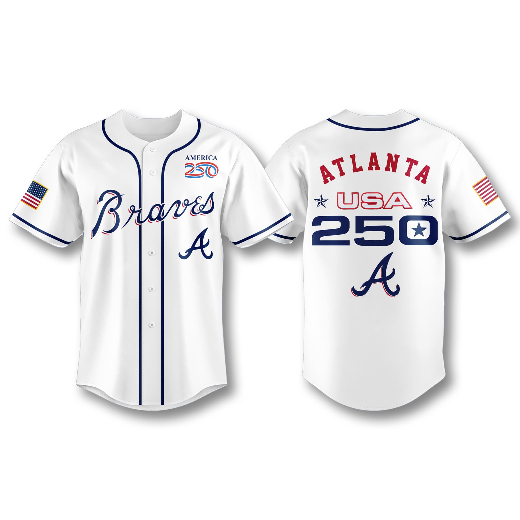 Own the Atlanta Braves USA 250 Jersey 2026 today to join the “Warriors” in asserting strength and pride. Don’t miss the chance to leave your personal mark on the brilliant 250-year history of the United States!