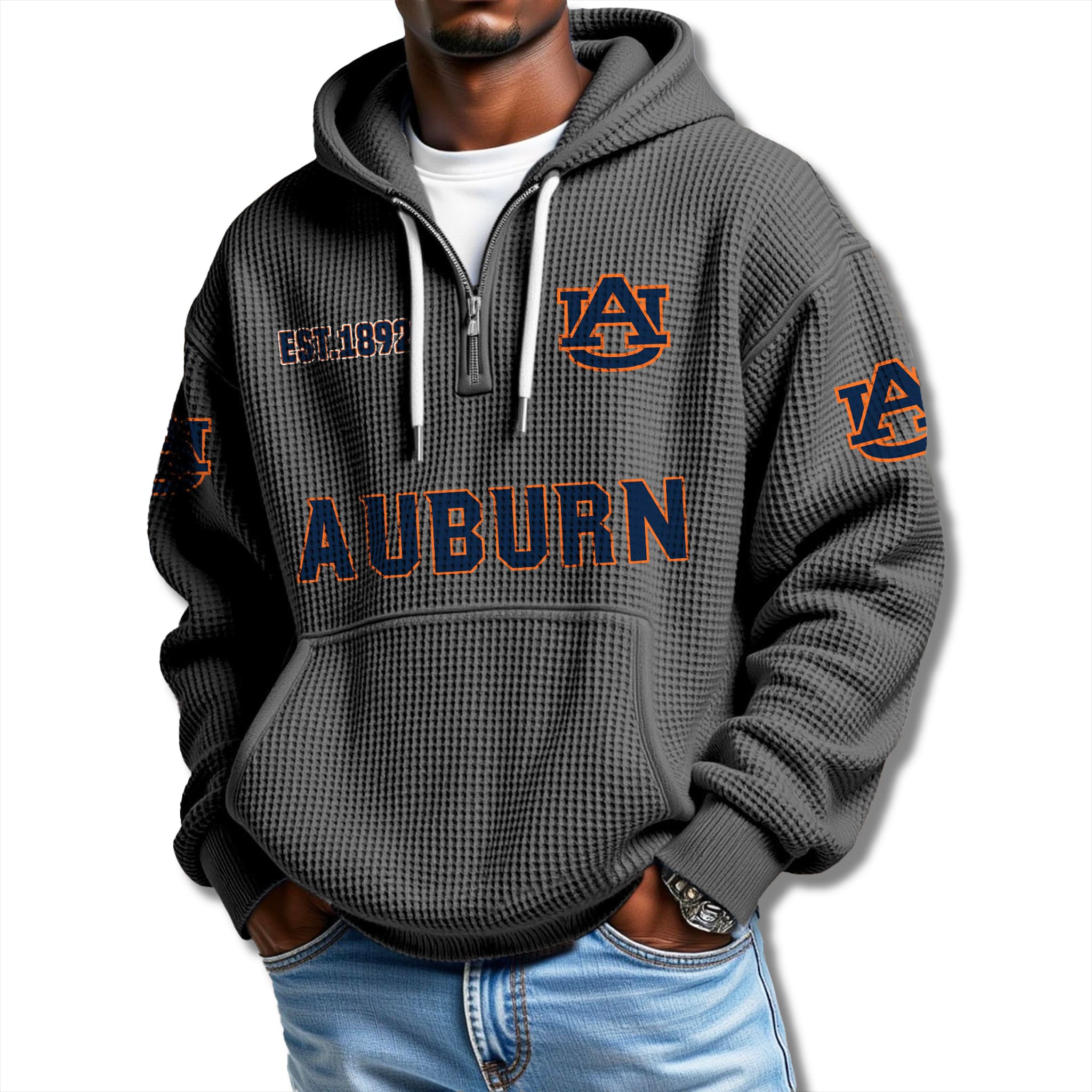Auburn Tigers EST 1892 Waffle Quarter Zip Hoodie 2025 – Ignite the Warrior Spirit of Orange and Navy