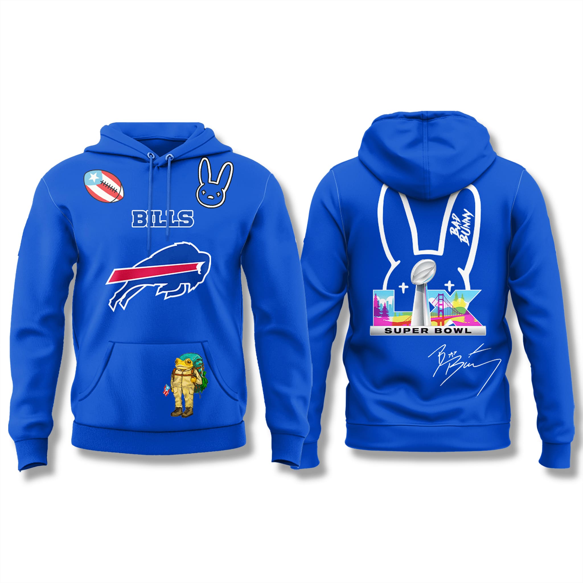 Get Mafia and Bunny together! This exclusive Bad Bunny Bills 2025 hoodie is the perfect way to show off your team spirit and iconic style. Don’t wait any longer – this highly collectible Bills Super Bowl gear is selling fast! Get your Bills hoodie today and join the crazy train!