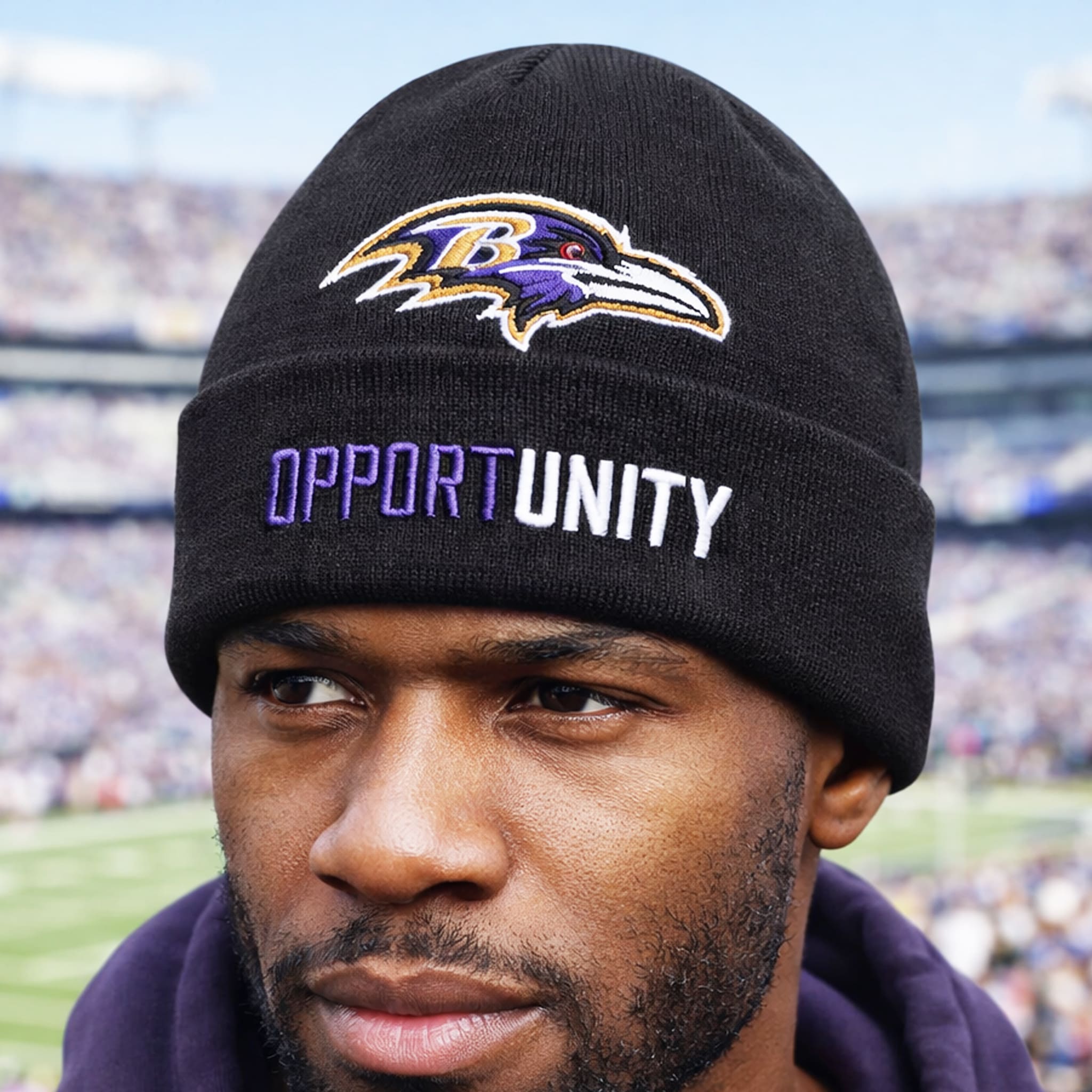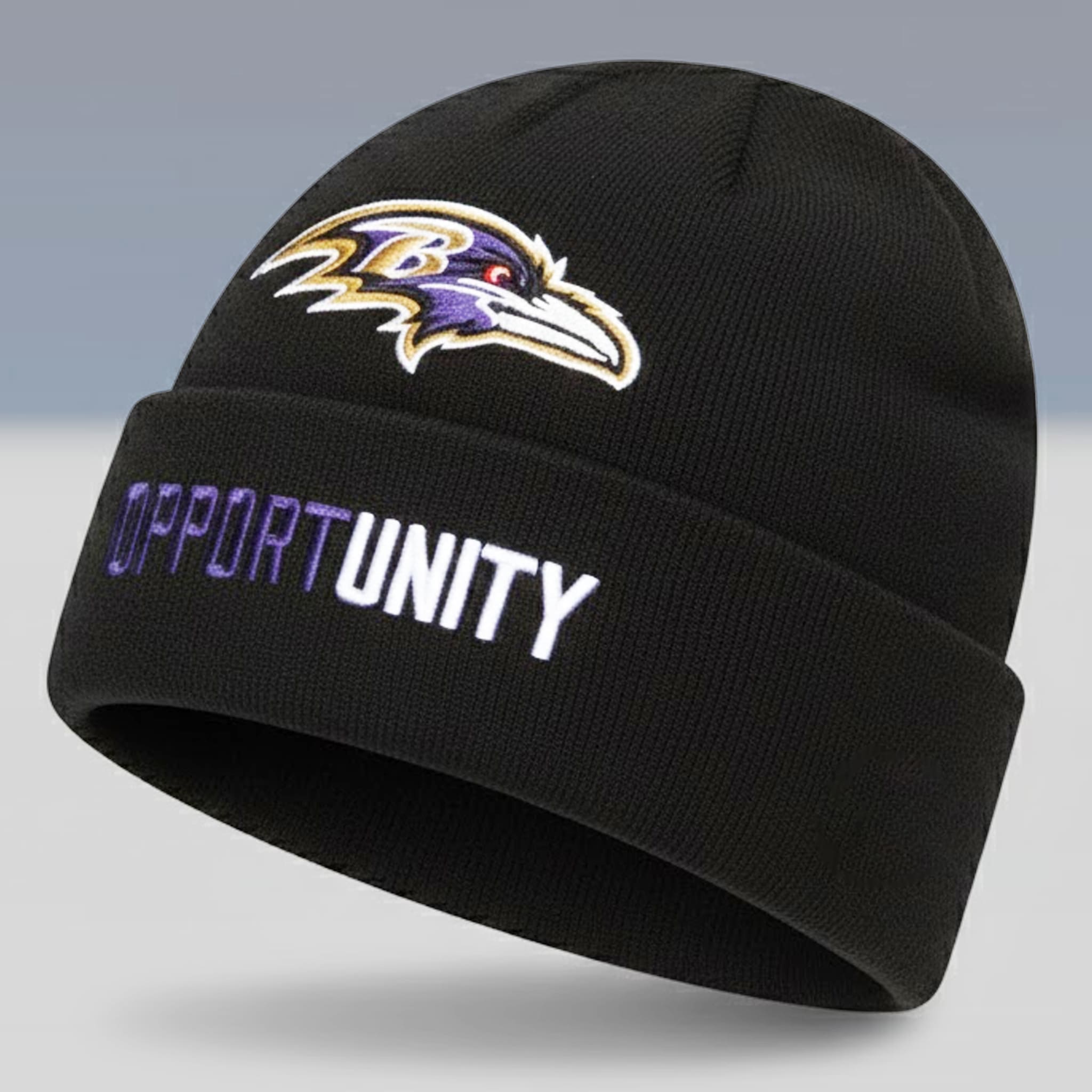 The Ravens Opportunity Beanie Hat is a refined blend of modern fashion and a meaningful social message. Featuring the raven – an emblem of intelligence and hidden strength – this beanie celebrates a bold mindset and the relentless pursuit of new opportunities to break through limits.