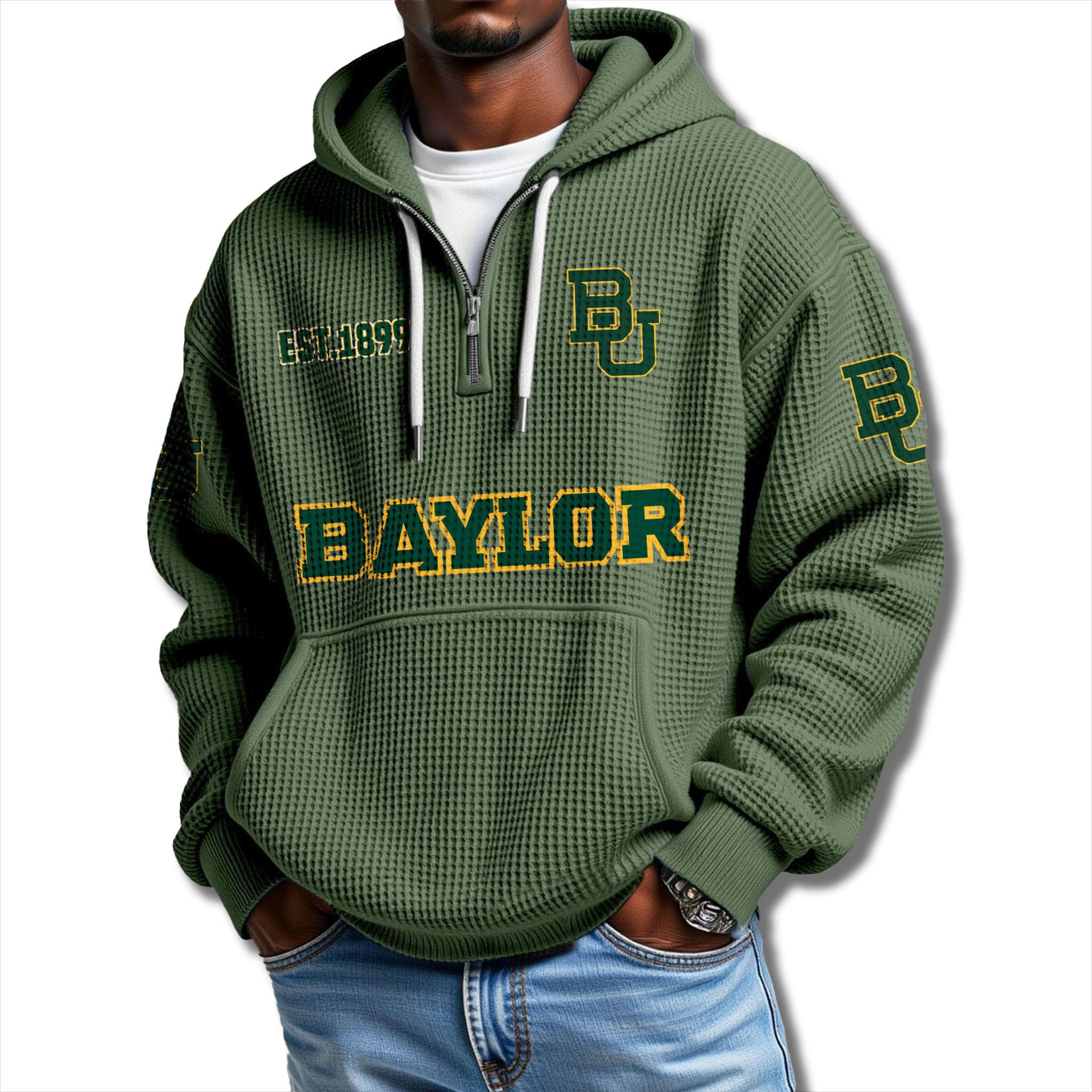 Baylor Bears EST 1899 Waffle Quarter Zip Hoodie – The “Sic ’Em” Standard of Style