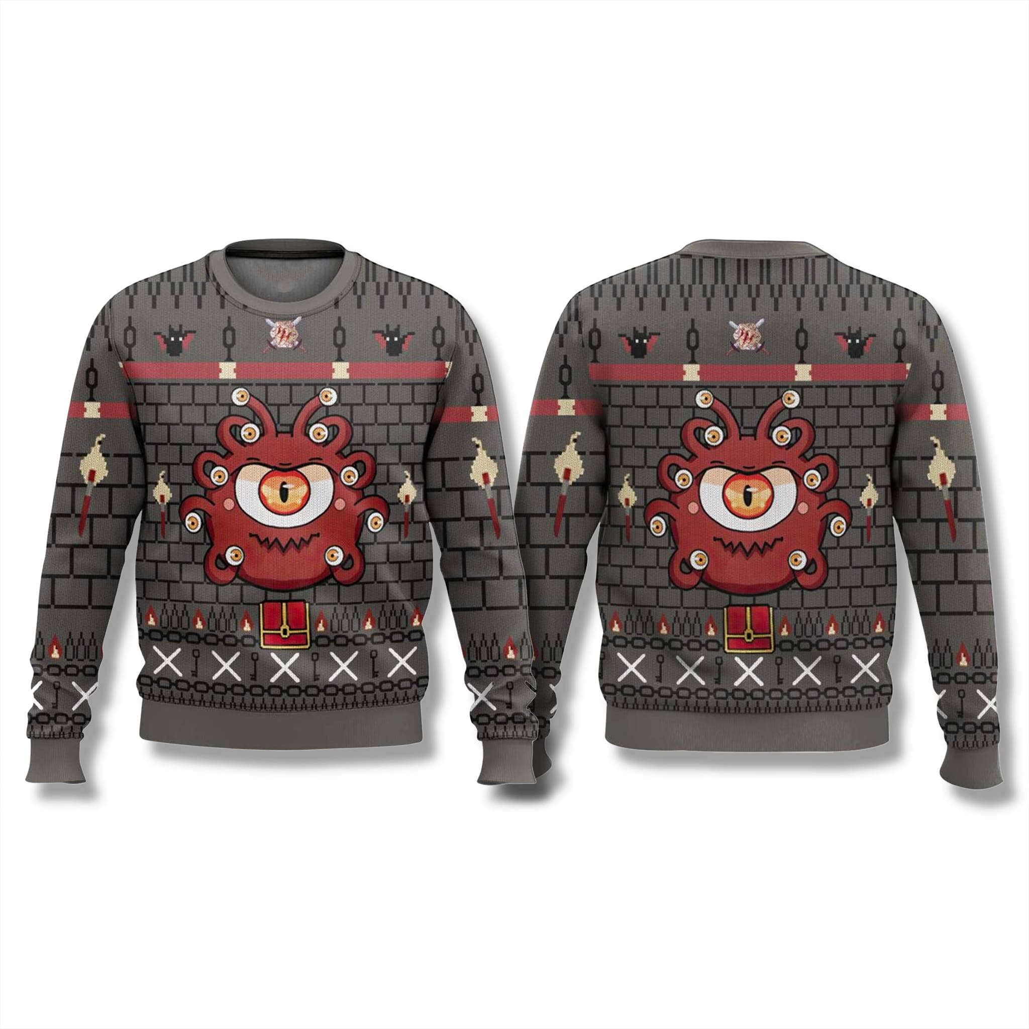 Beholder Monster Dungeons and Dragons Ugly Christmas Sweater – The Eye Tyrant of Holiday Cheer