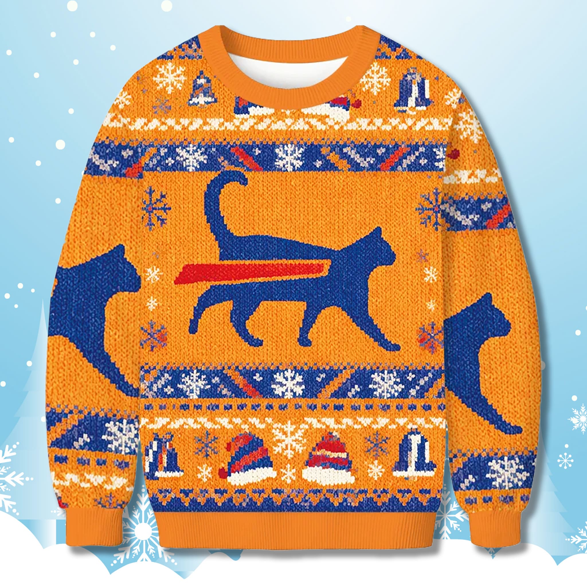 The Mafia just got whiskers. The Bills Meowfia Funny Ugly Christmas Sweater unleashes a blue-collar cat syndicate that trades snow tires for nine lives and wings for wingmen. One navy kitty struts across the chest, red scarf flapping like a victory flag, while the entire herd prowls sleeves and hem. Cheddar-soft acrylic keeps you toasty from tailgate to takeover.