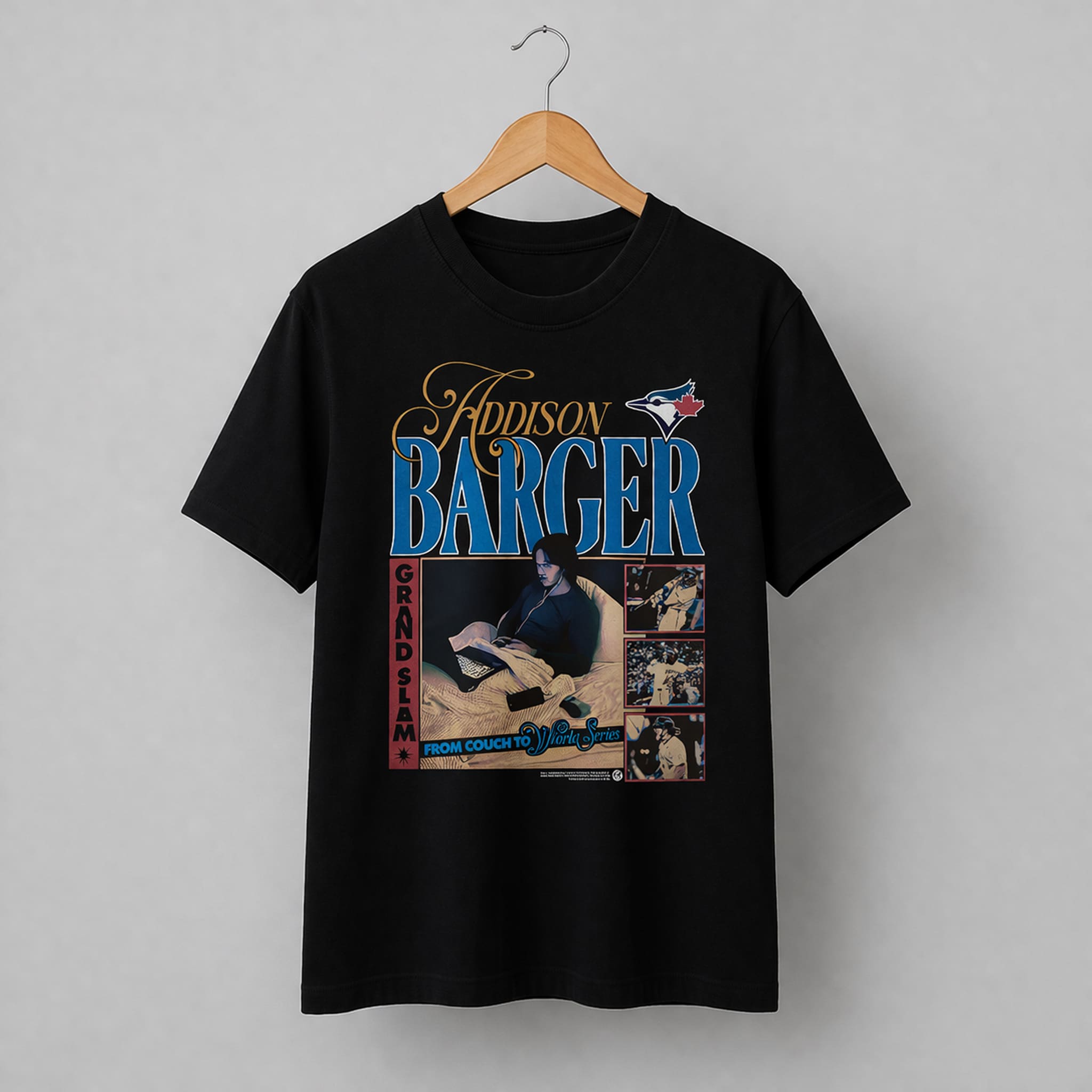 The Blue Jays Addison Barger Couch Shirt Giveaway 2026 is a special, fun, and inspiring gift for fans during match vs Twins at Rogers Centre (Apr 11). This shirt celebrating the viral story “from couch to World Series hero” of Addison Barger, who once slept on a pull-out couch in teammate Davis Schneider’s hotel room throughout the 2025 World Series journey, then unexpectedly stepped onto the field and hit a historic grand slam!