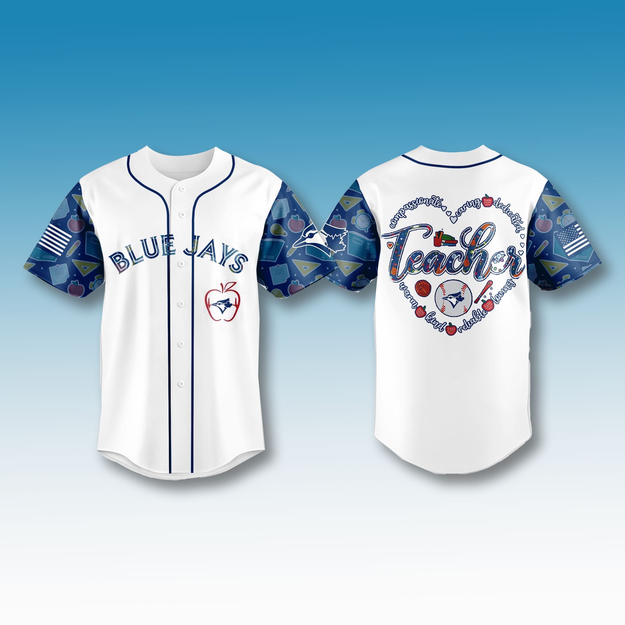 With its refined design style, the jersey features colorful school-themed sleeve graphics that create a warm, energetic, and approachable look. This is not just a piece of sports apparel, but also a bridge that connects teachers, students, and fans of the legendary Blue Jays.