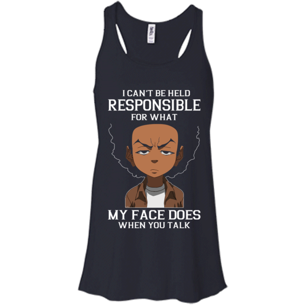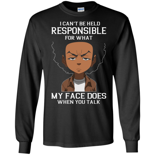 Boondocks: I can’t be held responsible for what my face does when you talk t-shirt, tank top, hoodie.. available.