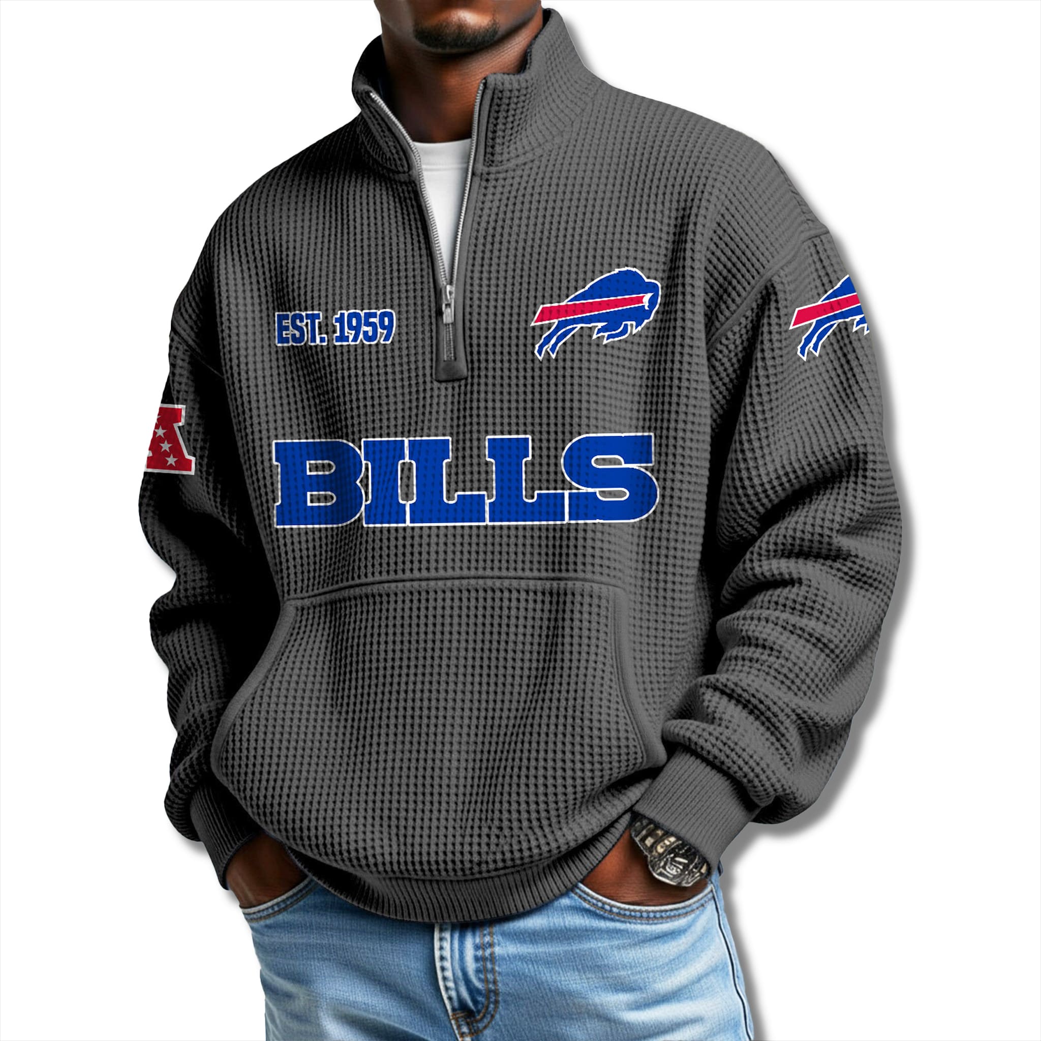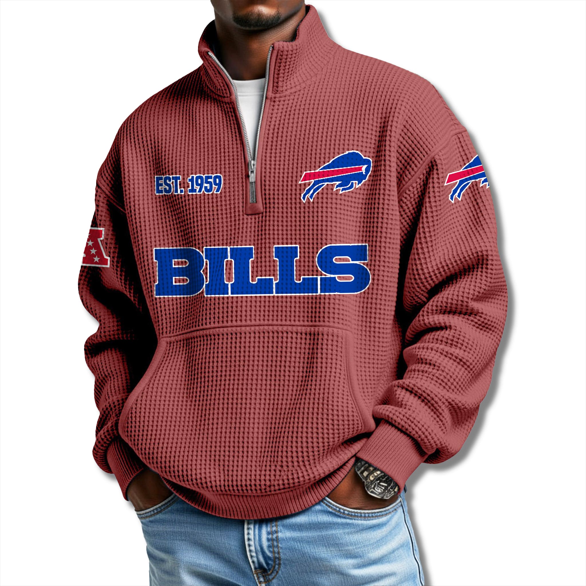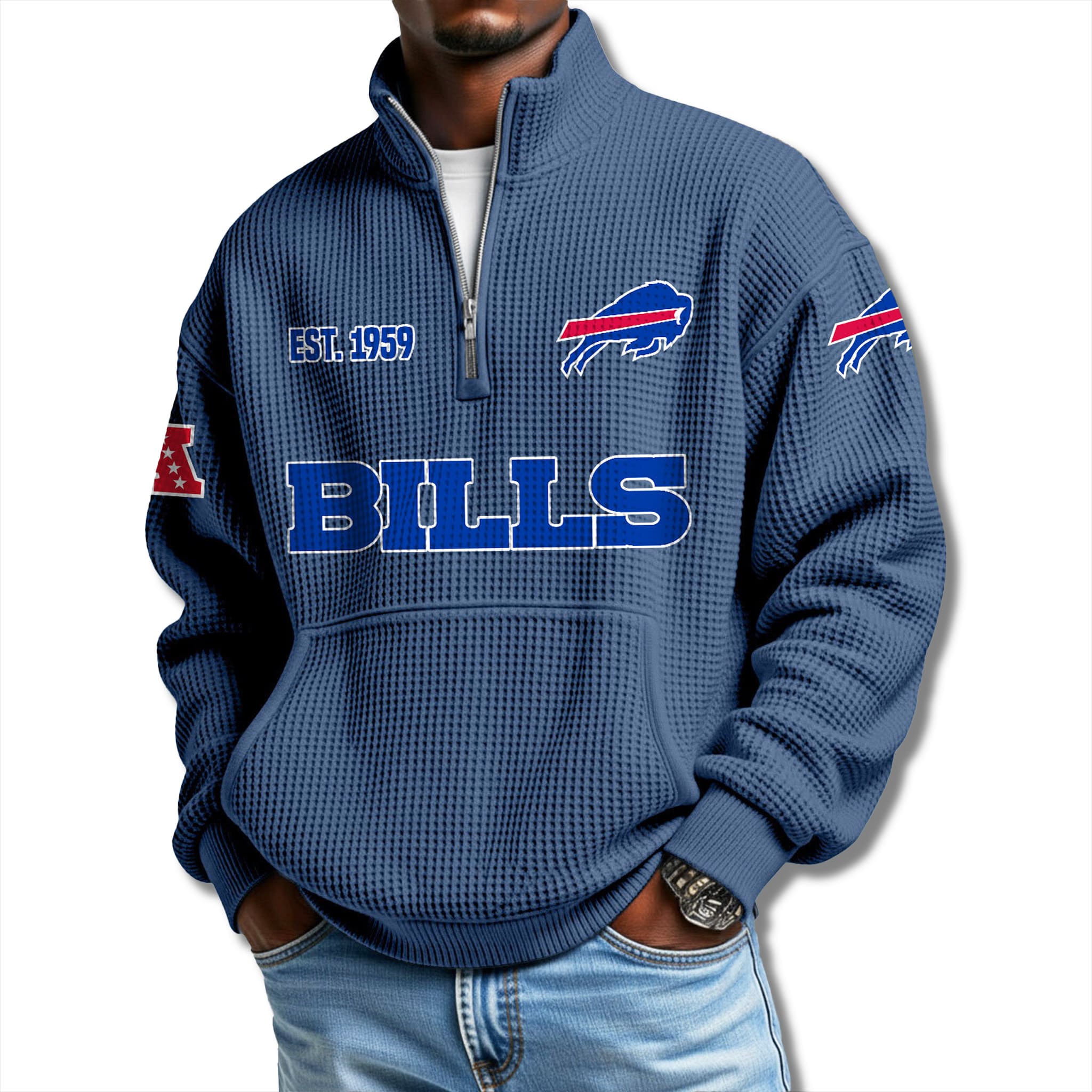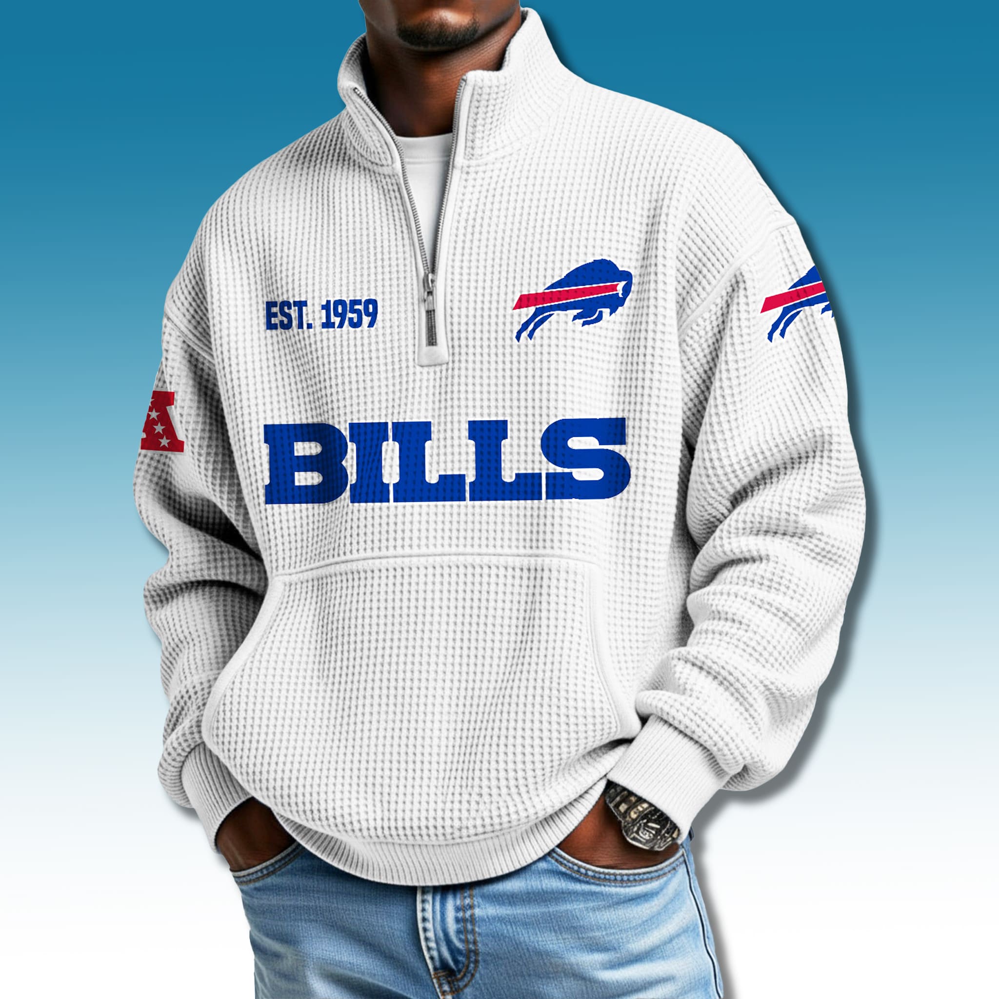 Bills EST 1959 Waffle Quarter Zip Sweater – The Icy Strength of Buffalo