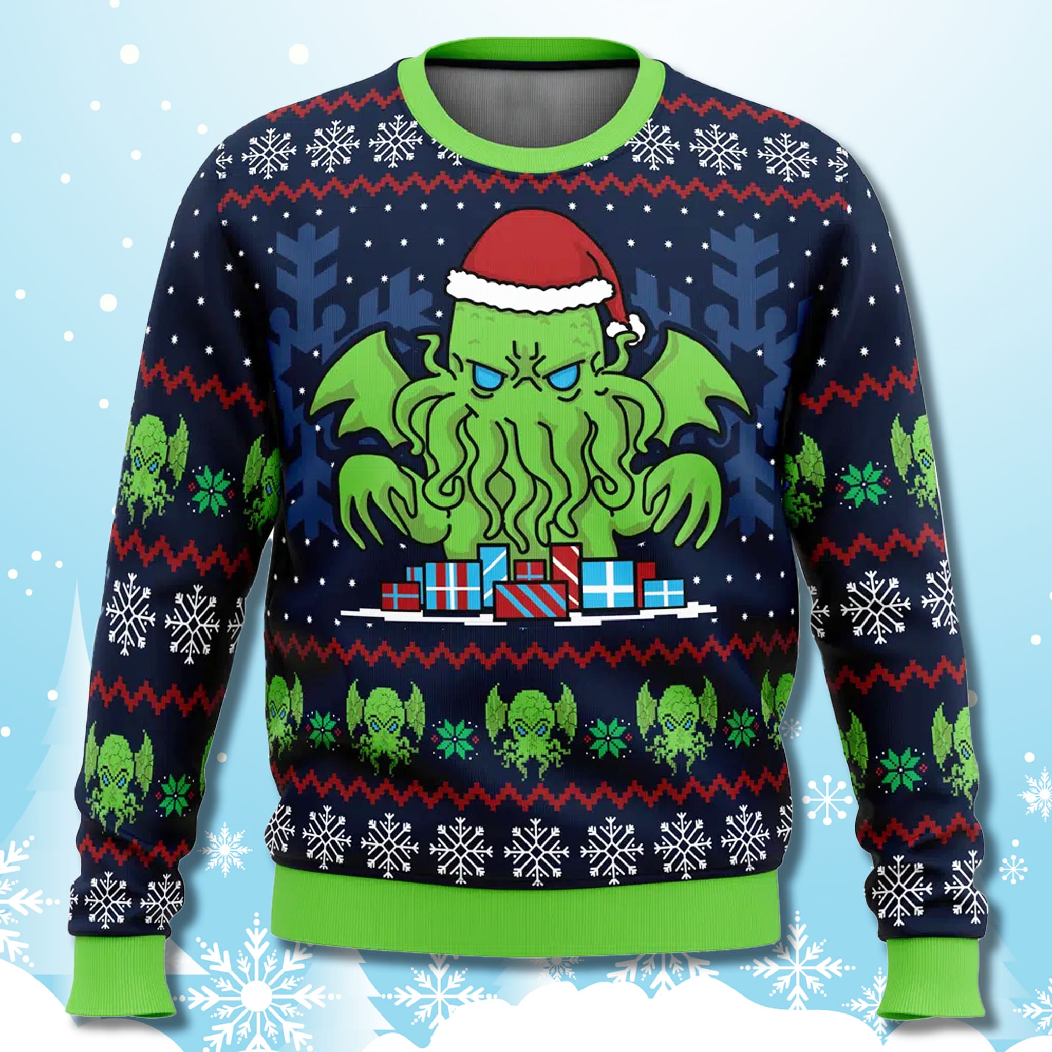 Cthulhu Call Of Christmas Ugly Sweater: The Great Old One Has Risen for the Holidays!