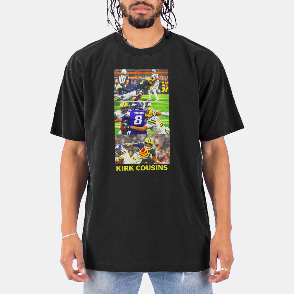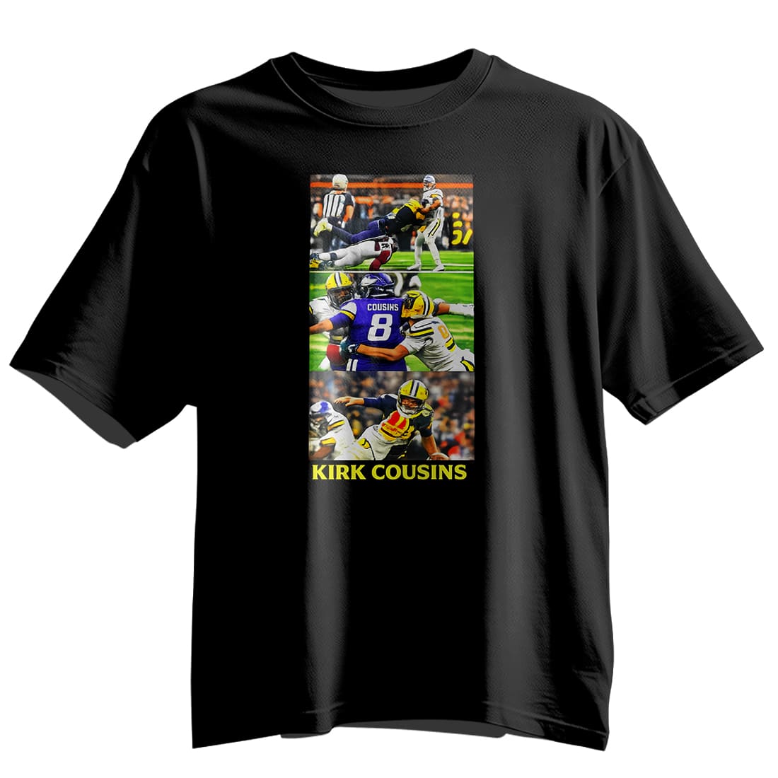 The Cam Jordan Kirk Cousins Shirt is a black double-sided T-shirt commemorating the hilarious trolling moment by New Orleans Saints defensive end Cam Jordan aimed at quarterback Kirk Cousins and the Falcons after the 2025 season. After the Saints defeated the Falcons in Week 18 (January 4, 2026), Cam Jordan wore this shirt during a postgame interview. The front features a collage of moments where Cam Jordan and his teammates took down Kirk Cousins – including standout sacks – along with the name “KIRK COUSINS” in neon yellow. The item quickly went viral thanks to its humor and the classic NFC South rivalry.
