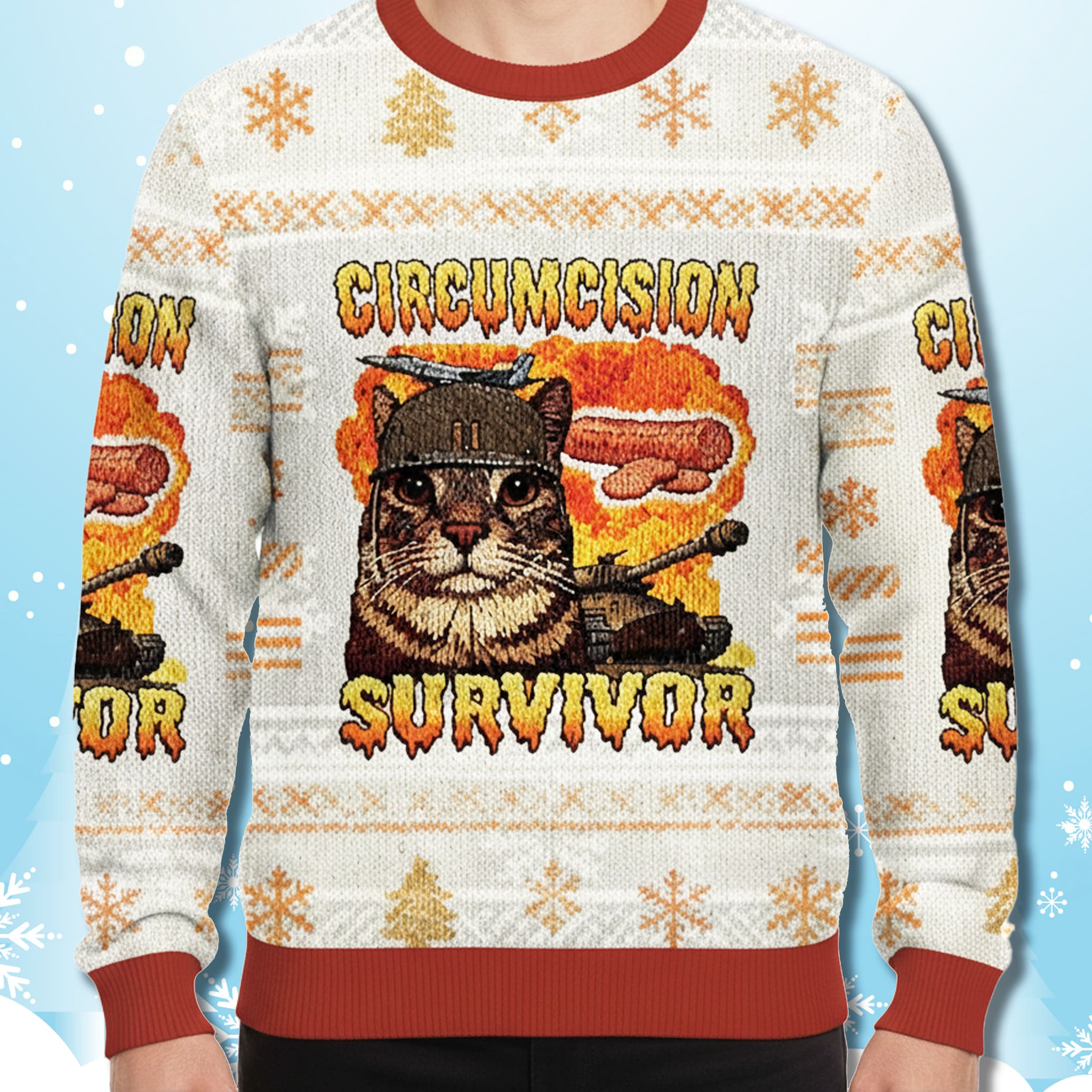 Cat Circumcision Survivor Meme Ugly Christmas Sweater: Dark and Humorous Holiday Knit
