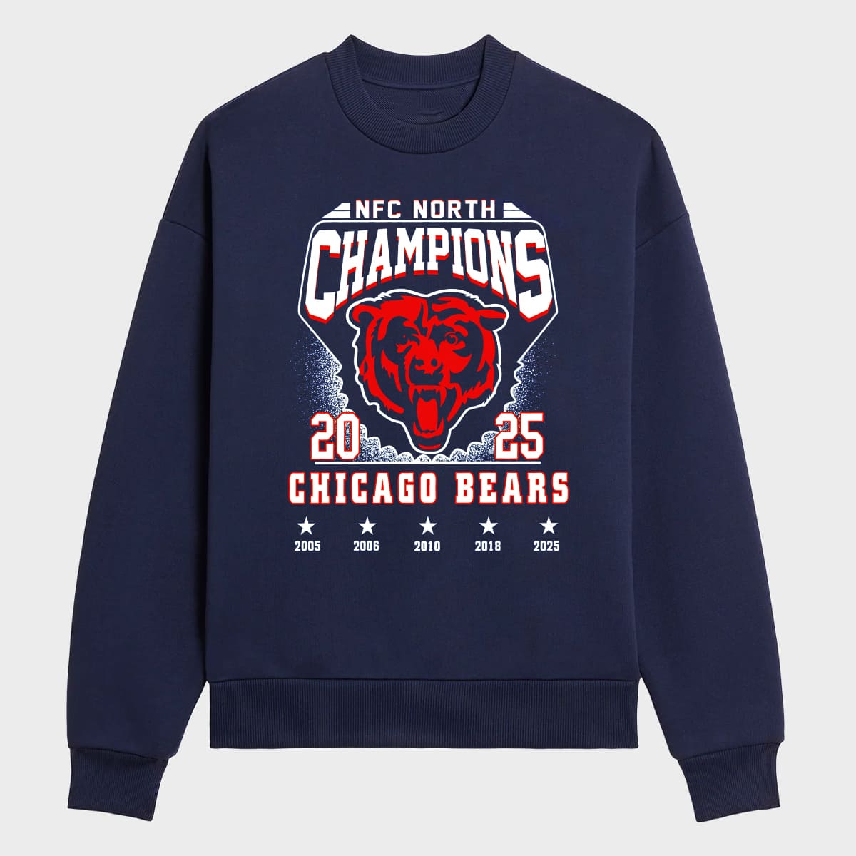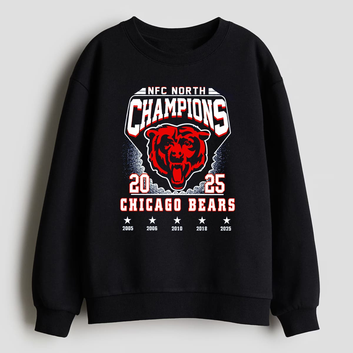 Bears 5-time NFC North Champions Shirt 2025 is a special T-shirt design honoring the Bears’ 5th division championships (2005, 2006, 2010, 2018, 2025) – a historic milestone marking the powerful return of the NFC North champions after a 7-year wait. The bold design ignites the eternal Bear Down pride of fans.
