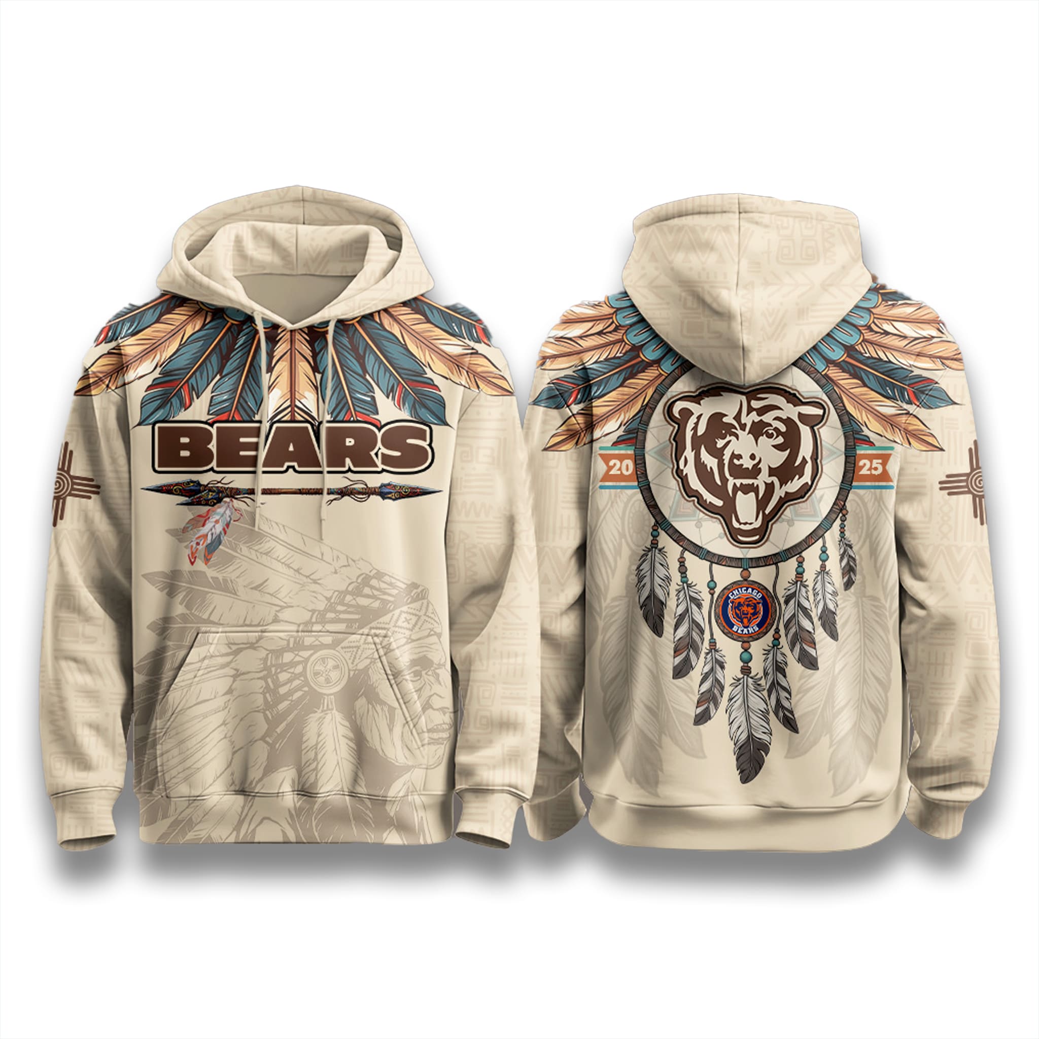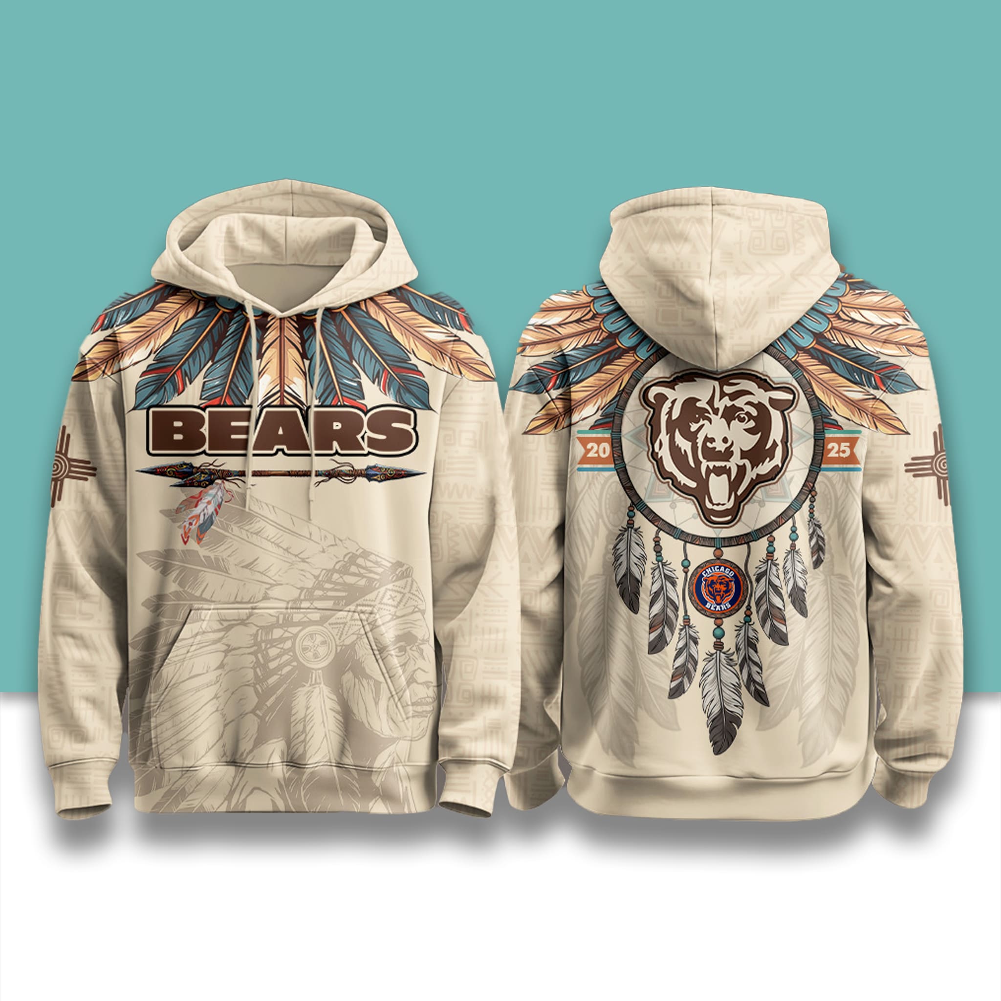 Released in honor of Native American Heritage Month 2025, this hoodie bridges the world of sports fandom with cultural recognition. It’s a meaningful way for Chicago Bears fans to show support not only for their team but also for a tradition of strength, respect, and community.