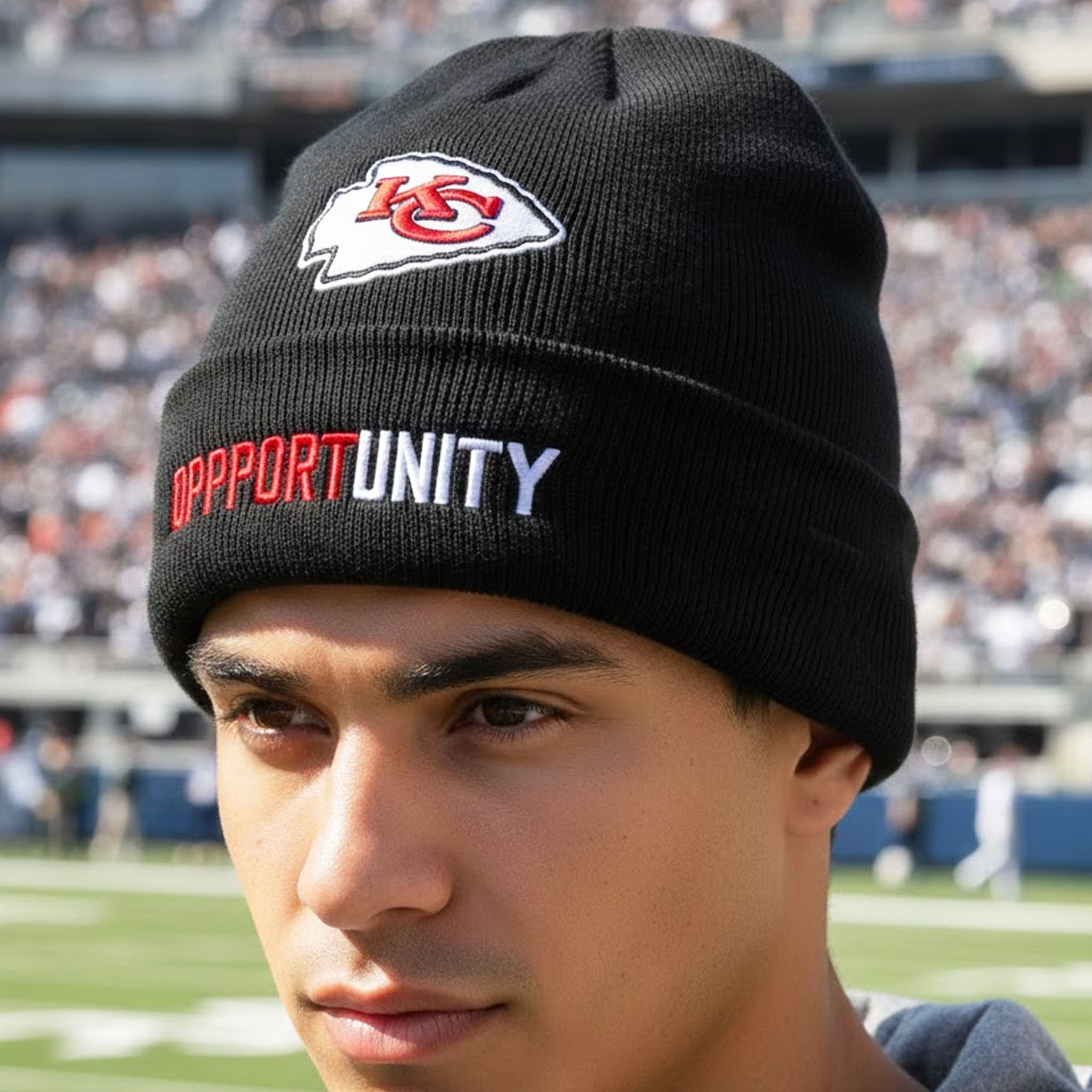 Wrap yourself in confidence and warmth with the KC Chiefs Opportunity Winter Hat. Designed to perform in harsh winter conditions while carrying a powerful message of growth and opportunity, this beanie is the perfect companion for fans and style-conscious wearers alike. A must-have winter essential – and a meaningful gift for those who never stop pushing forward.