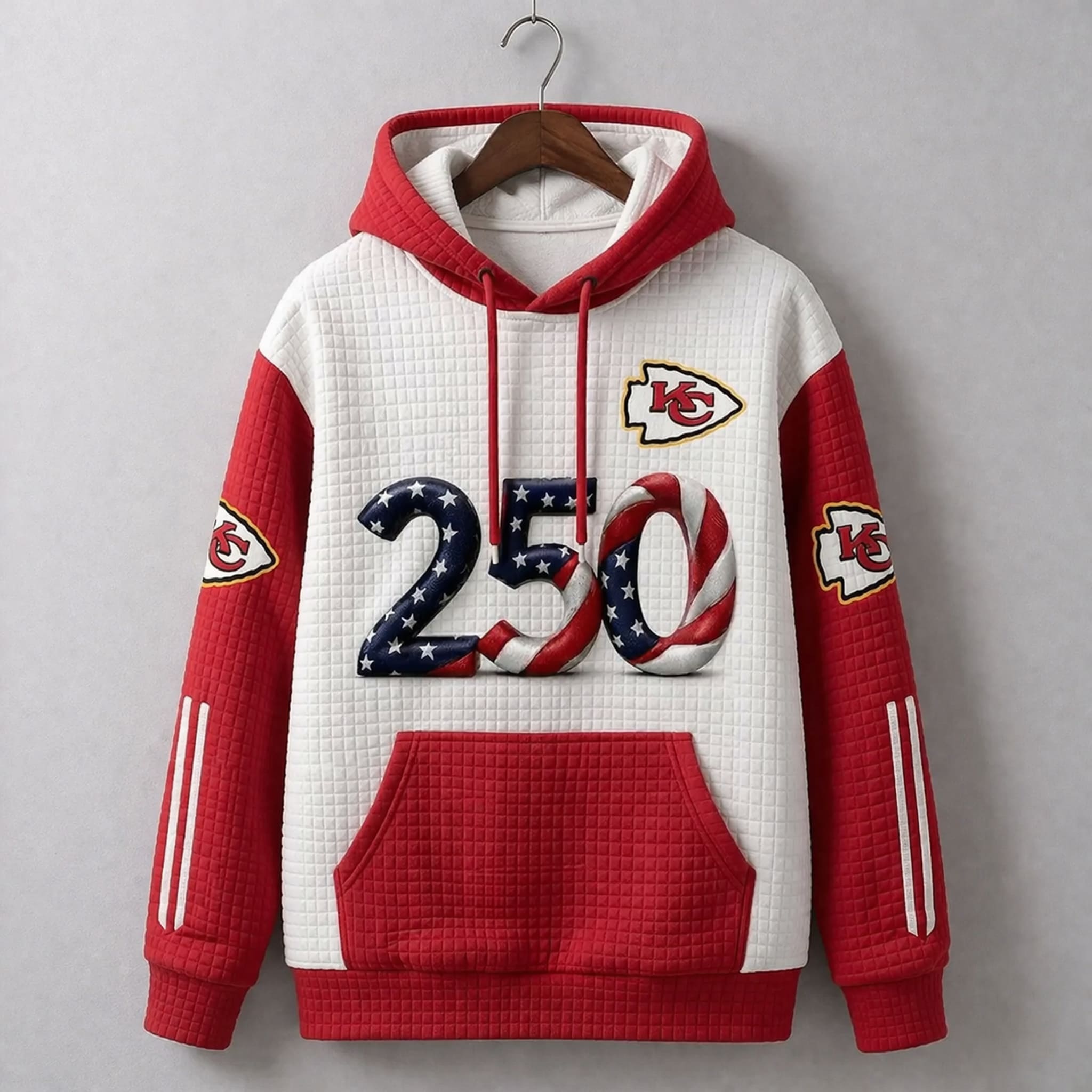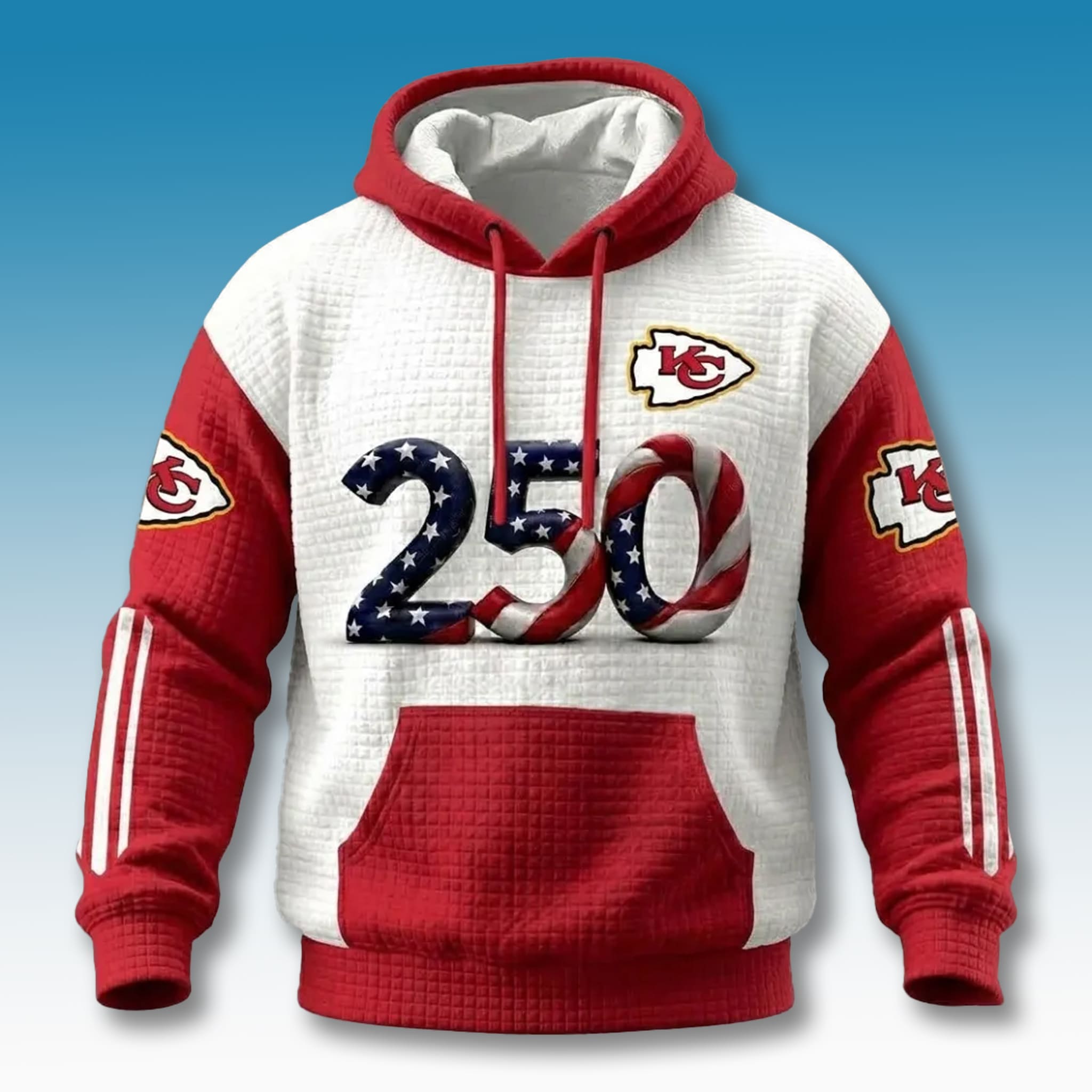 When the era of dominance of the Kansas team meets the 250-year milestone of the glorious history of the United States, the Chiefs USA 250 Birthday Waffle Hoodie is the echo of champions. Toward the 2026 Semiquincentennial celebration, this hoodie is not simply apparel, but a symbol honoring endurance, strength, and the desire to conquer – the core values that have built both a sports empire and a free nation.