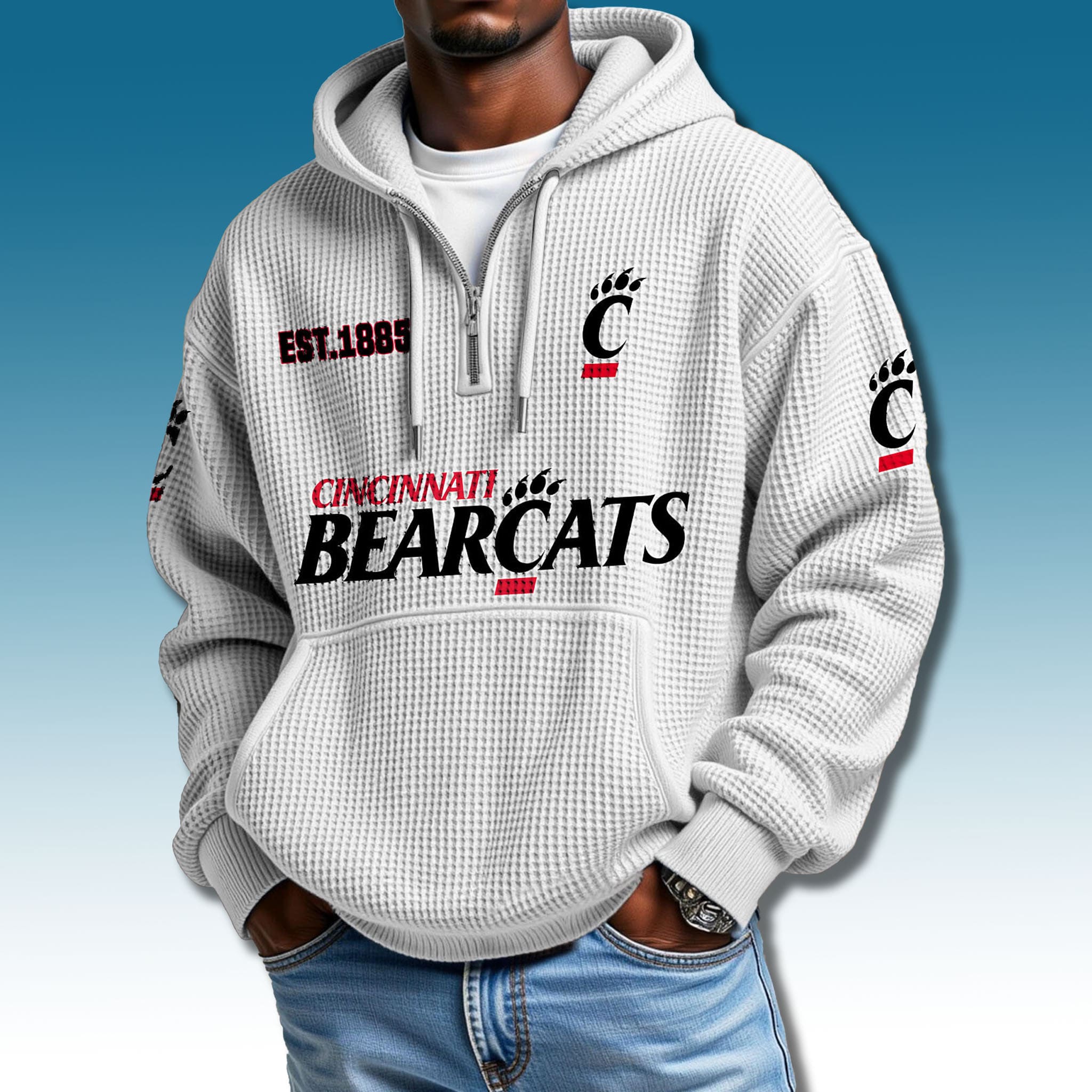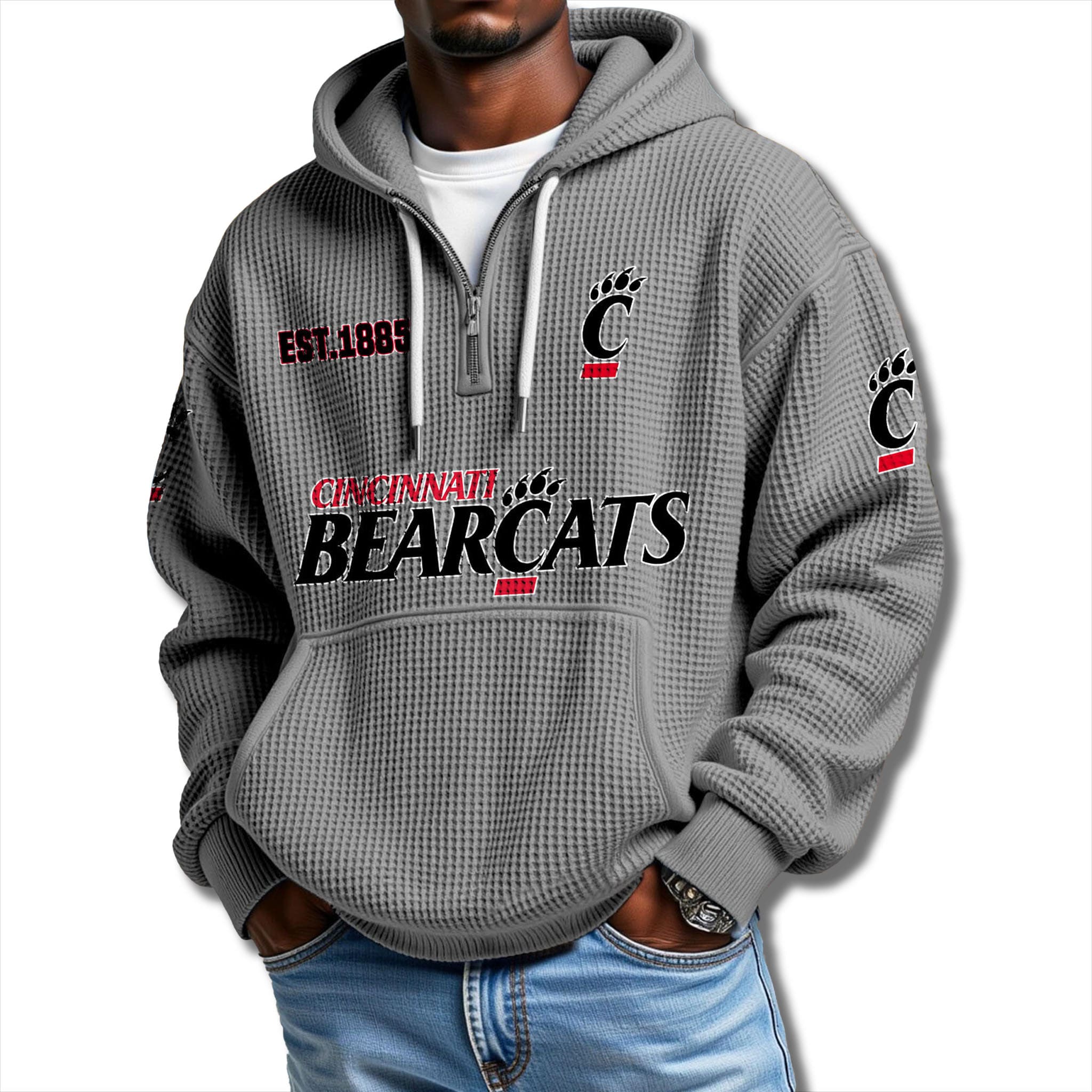 Cincinnati Bearcats EST 1885 Waffle Quarter Zip Hoodie – A Legacy of Pride, Warmth in Every Thread