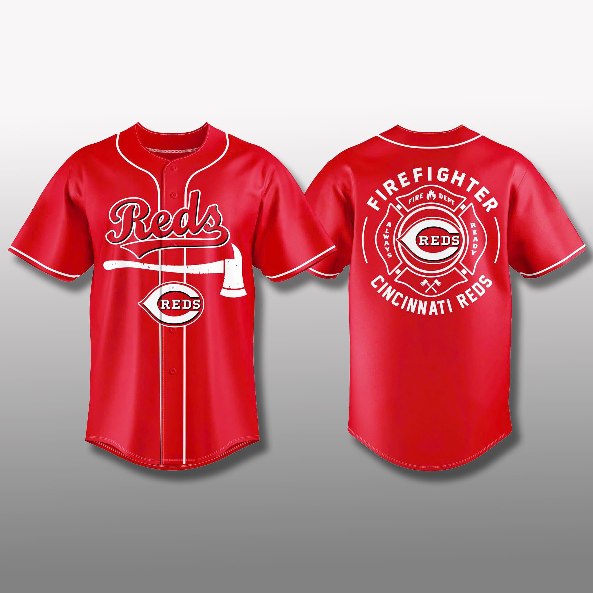 Ignite your Reds fervor with the Cincinnati Reds Firefighter Appreciation 2025 Jersey, a radiant blend of team tradition and firefighting fortitude. Capture this torch of Cincinnati spirit tonight – shop now and wear the flame of resilience.