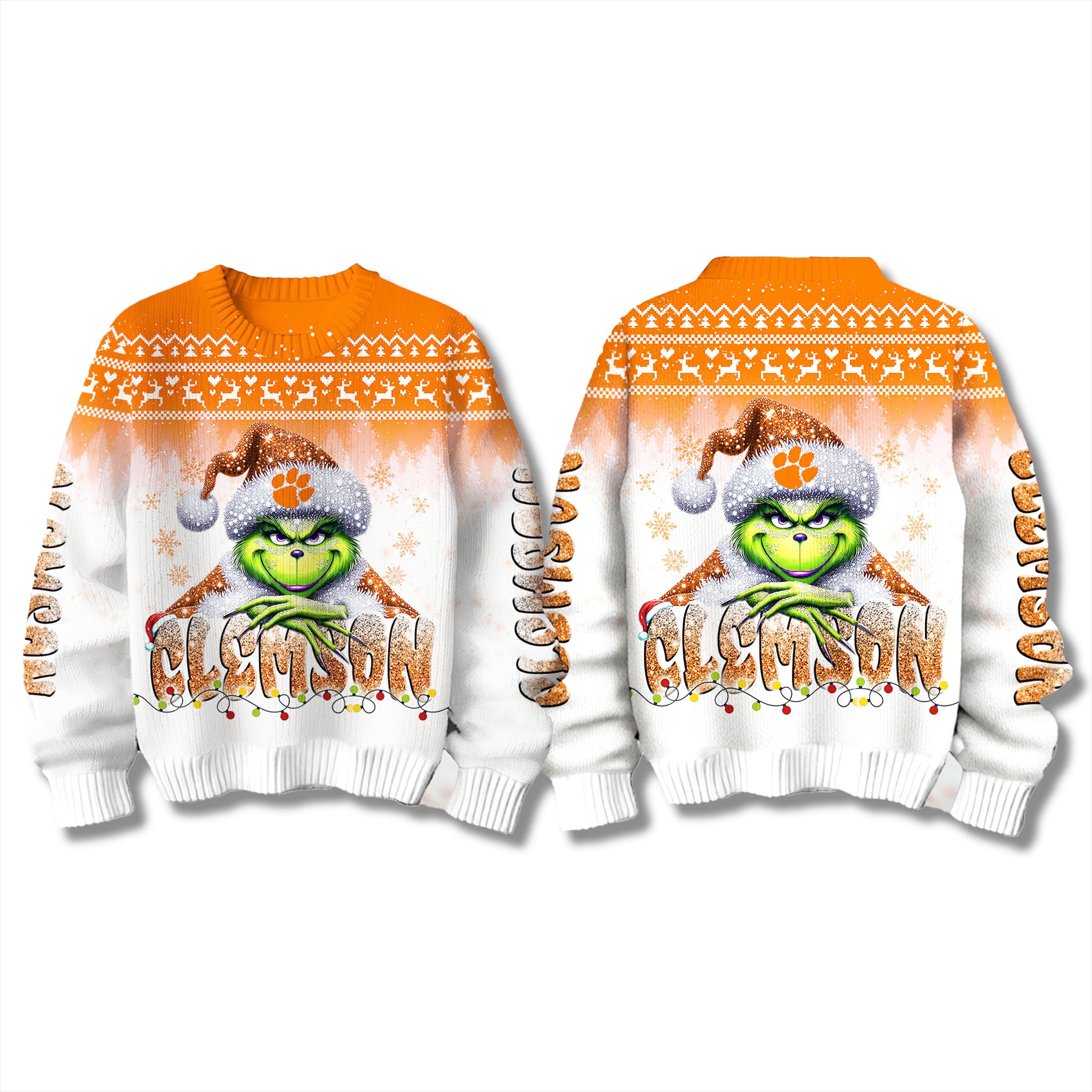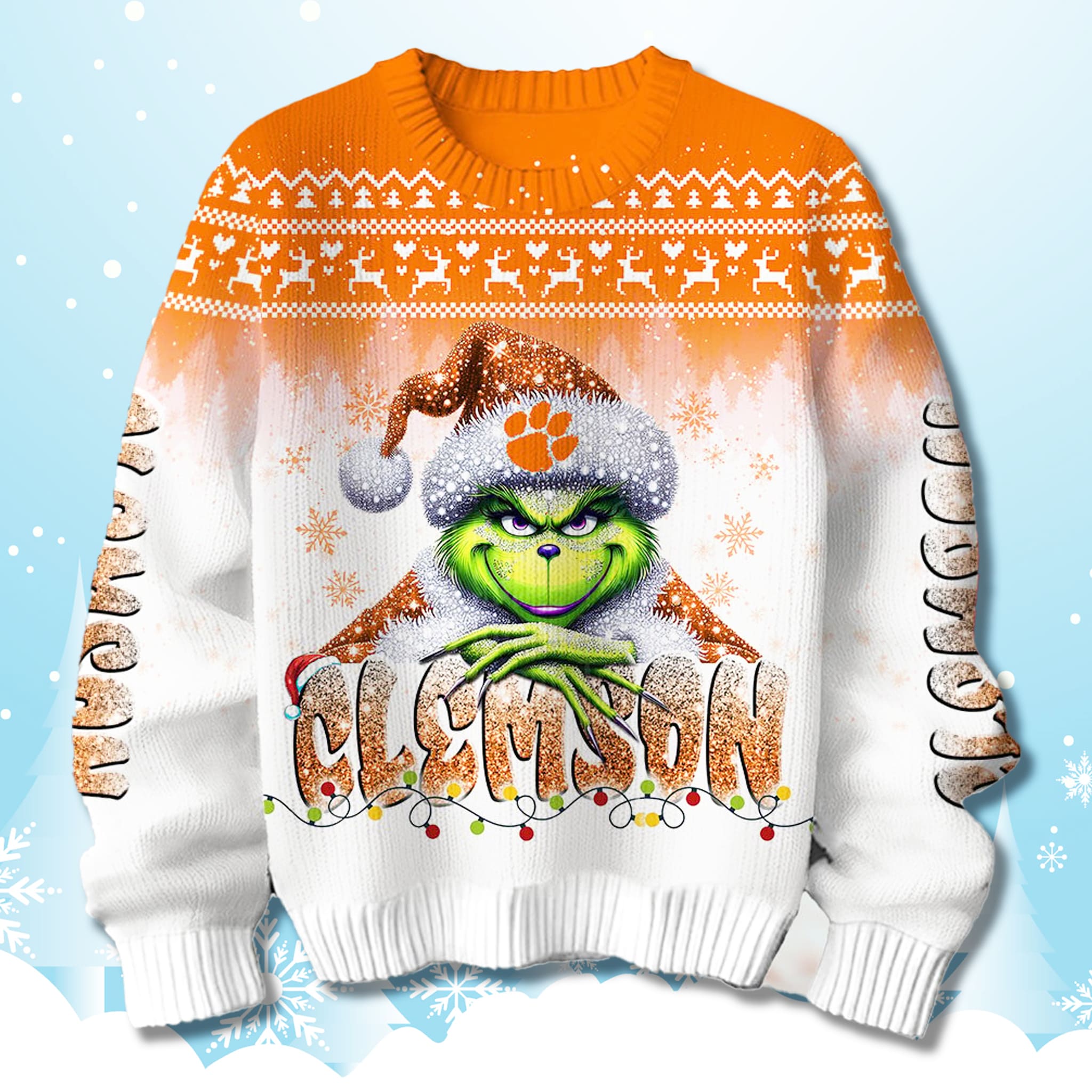 Clemson Tigers Christmas Snow Grnch 2025 Ugly Sweater – Festive Football Fan Apparel