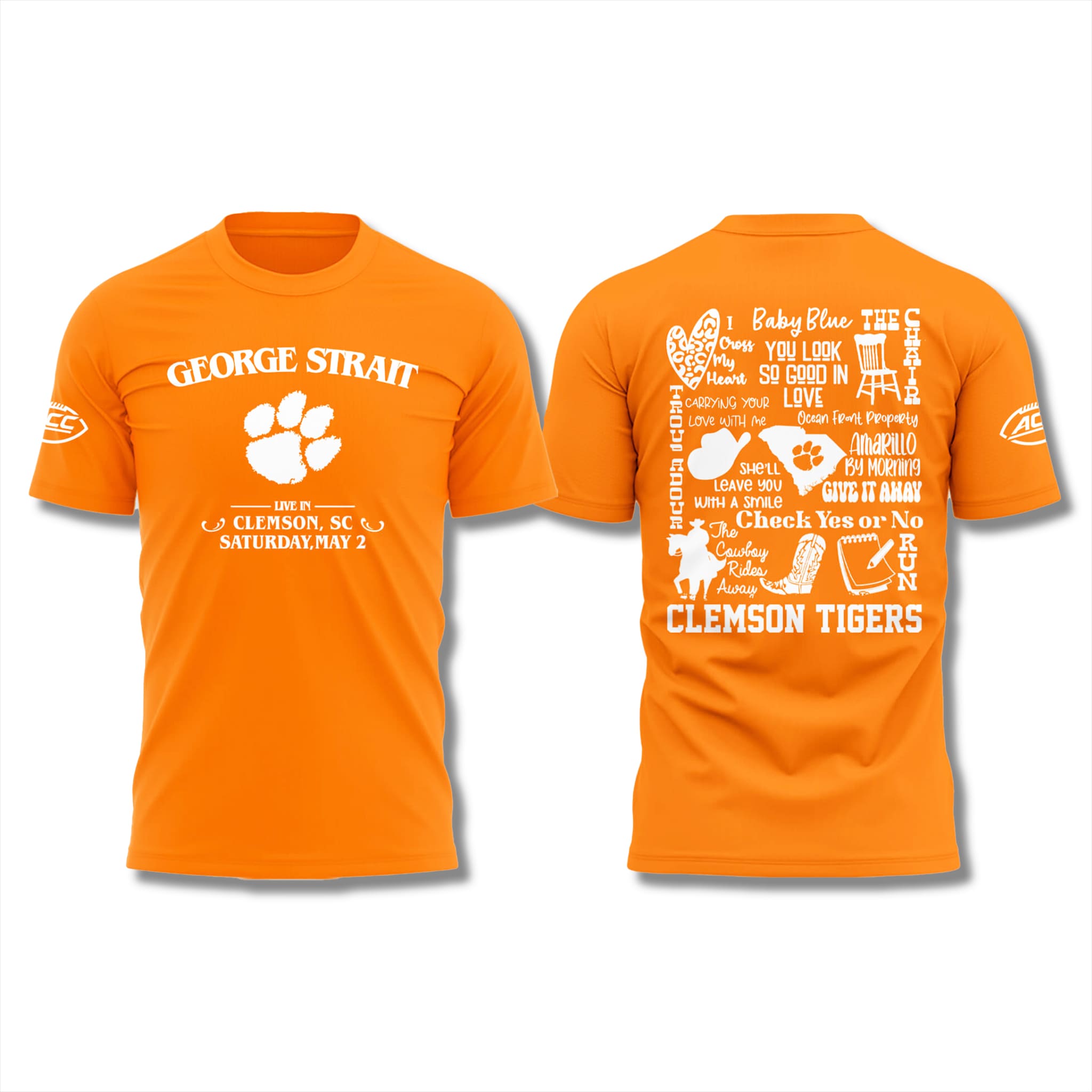 George Strait, the “King of Country,” will return to the Clemson Tigers’ Memorial Stadium (Death Valley) after 27 years – the first-ever “Death Valley Nights” event on May 2, 2026 will be a historic in-the-round concert, gathering more than 90,000 fans with guests Cody Johnson and Wyatt Flores, marking the return of stadium concerts after more than two decades. This Clemson Tigers x George Strait 2026 Shirt is the combination of Tigers heritage and Strait’s timeless hits, creating the perfect symbol for fans who share the same passion for country music and SEC football.