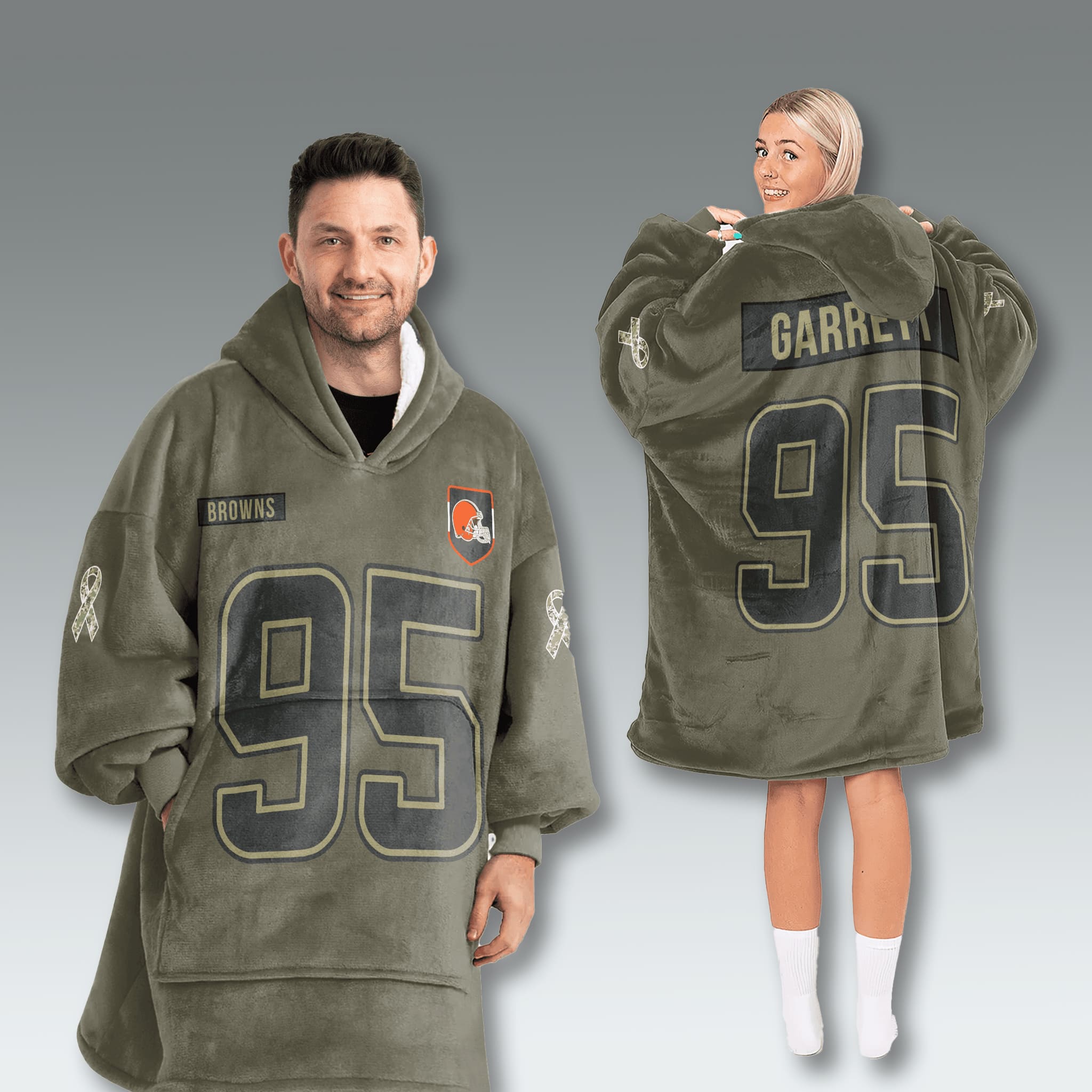 Wrap yourself in both warmth and unwavering team spirit with the ultimate Browns fan gear! This Browns Salute To Service Blanket Hoodie combines the cozy comfort of a throw blanket with the functional design of an oversized hoodie. It is a powerful way to honor the armed forces while staying incredibly warm and showing fierce support for the Cleveland and star player Myles Garrett.