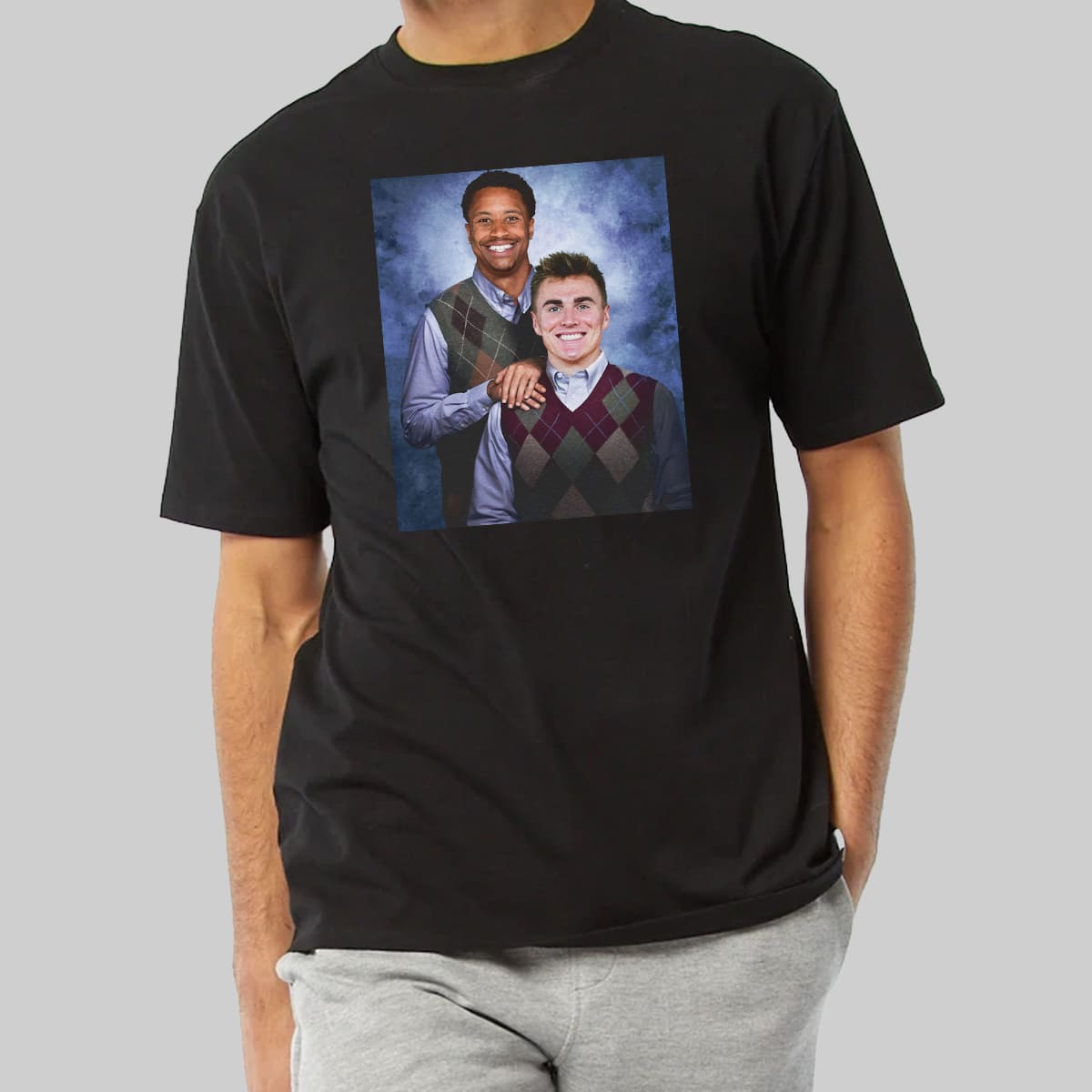 Spark your sense of humor and Broncos pride with the exclusive Courtland Sutton Bo Nix Step Brothers Shirt! This humorous Broncos shirt features the team’s dynamic duo, quarterback Bo Nix and catcher Courtland Sutton, posing in the iconic, quirky portrait style of the movie Step Brothers.