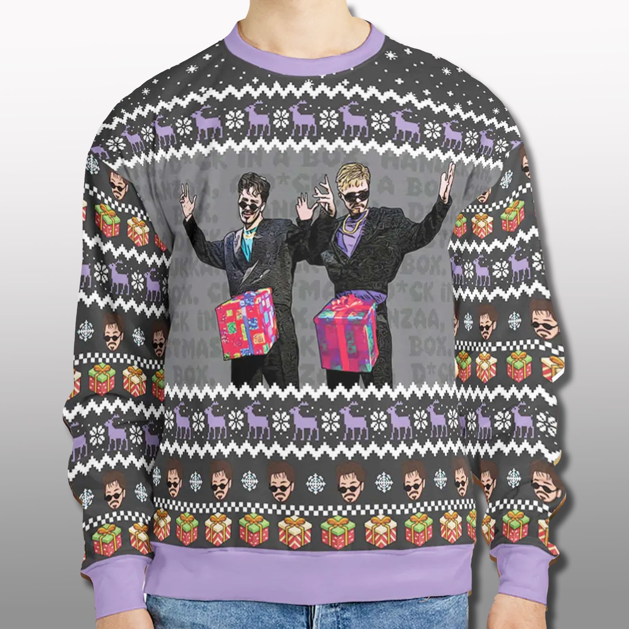 Make this Christmas a true SNL performance with the D in the Box Christmas SNL Ugly Sweater – the sweater that embodies the legendary “Step 1: Cut a hole in a box” moment. A must-have for ugly Christmas sweater enthusiasts and anyone who loves high-quality humor. Order today to enjoy holiday deals and be ready to gift your “special present” to the world!
