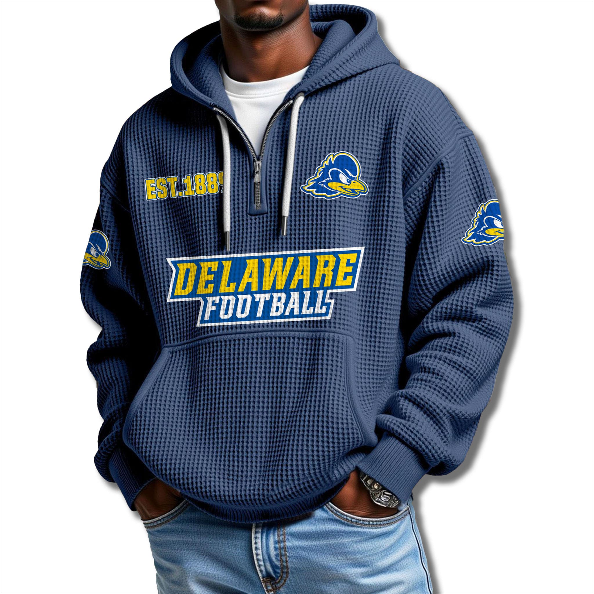 Delaware Blue Hens EST 1889 Waffle Quarter Zip Hoodie – Proud Blue Identity and a Timeless Legacy