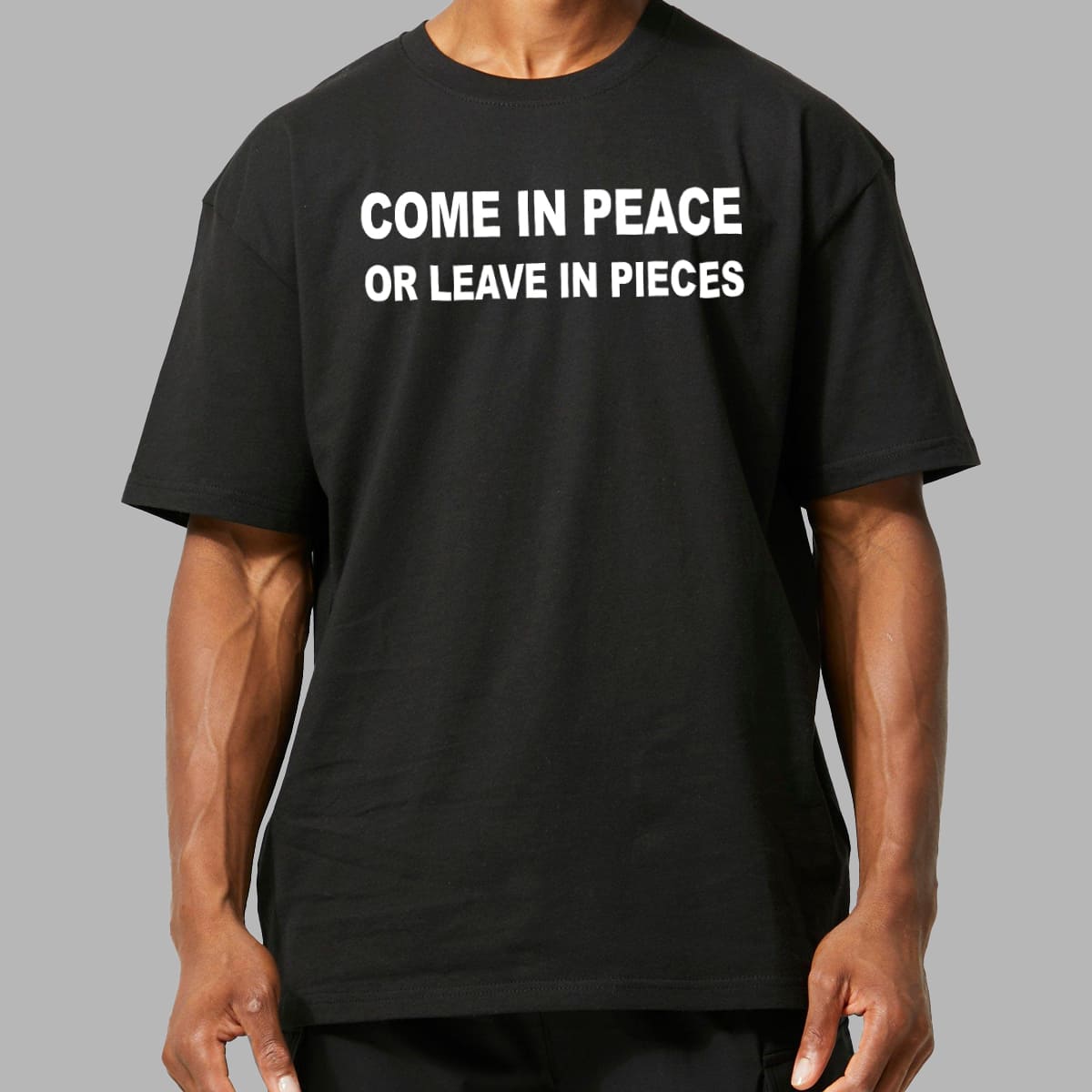 Own the Come In Peace Or Leave In Pieces Shirt Don Lemon to wear a message that’s impossible to ignore. With its sharp black-and-white design and powerful phrase, this tee is perfect for fans who want to show support and embody a spirit of confidence and resolve. Order today and let your stance speak before you even say a word.