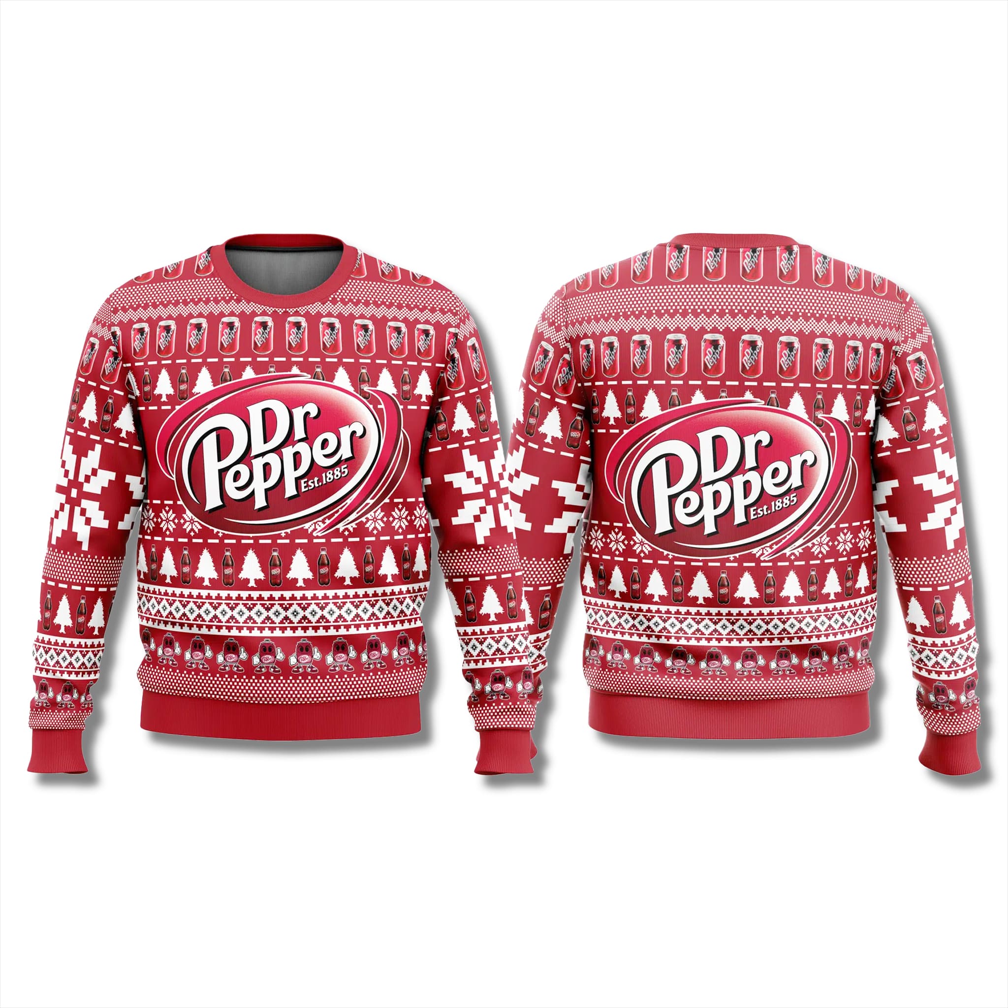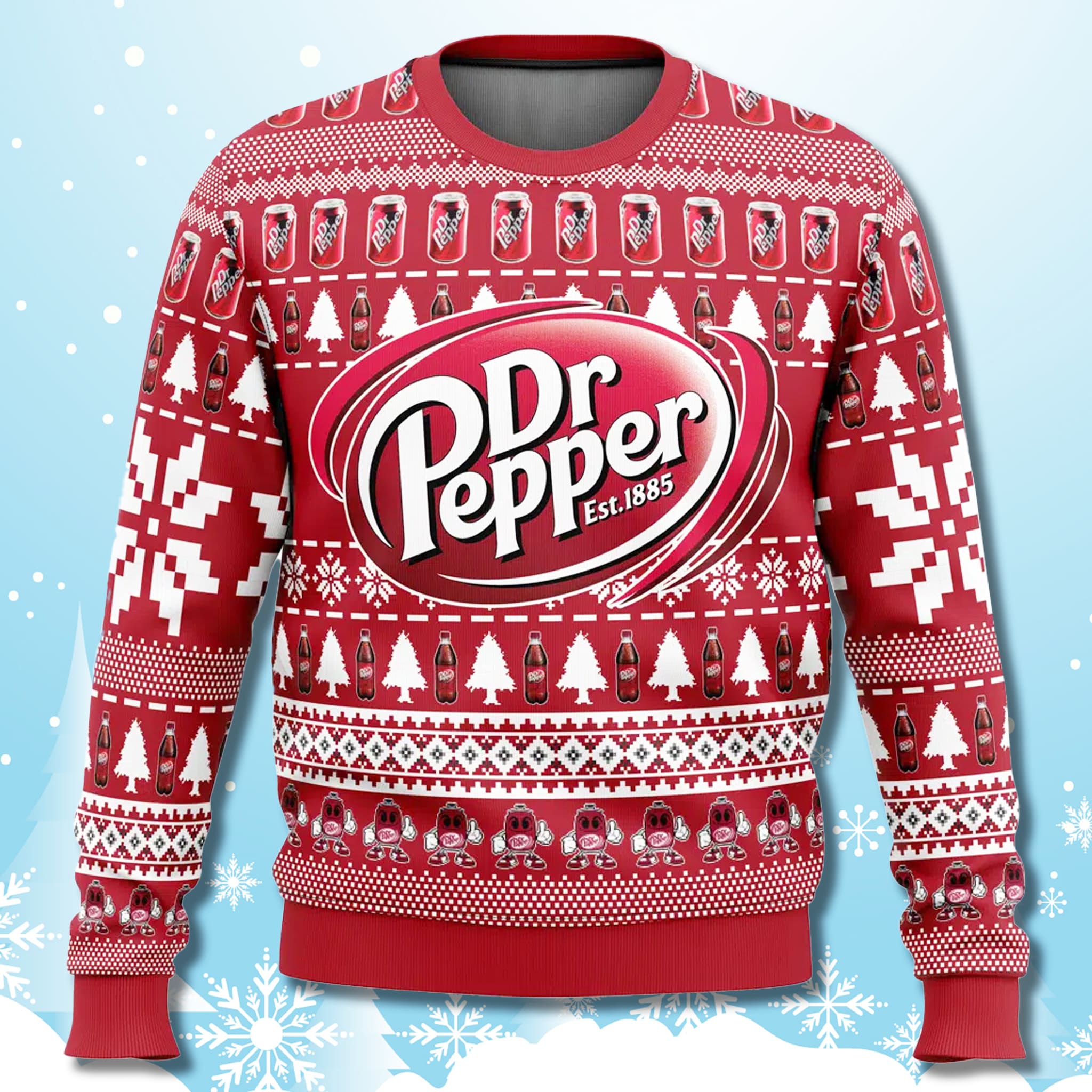 The Dr. Pepper Red Ugly Sweater Christmas is a festive fashion piece inspired by the famous Dr. Pepper soft drink brand, created in 1885 in Waco, Texas, by pharmacist Charles Alderton. Combined with the tradition of ugly Christmas sweaters that originated in the 1950s with Jingle Bell Sweater patterns.