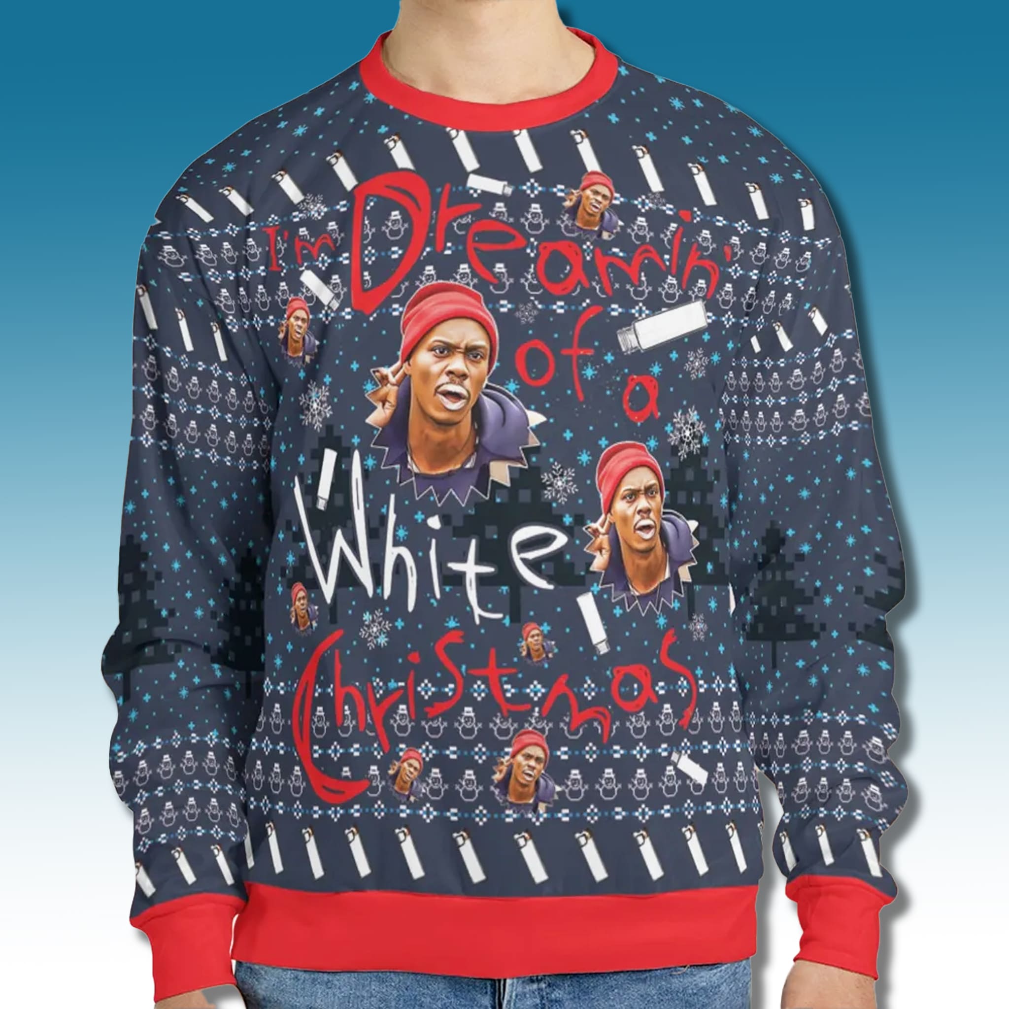 Dreaming Of A White Christmas Ugly Christmas Sweater – Hilarious Tyrone Biggums Pop Culture Parody