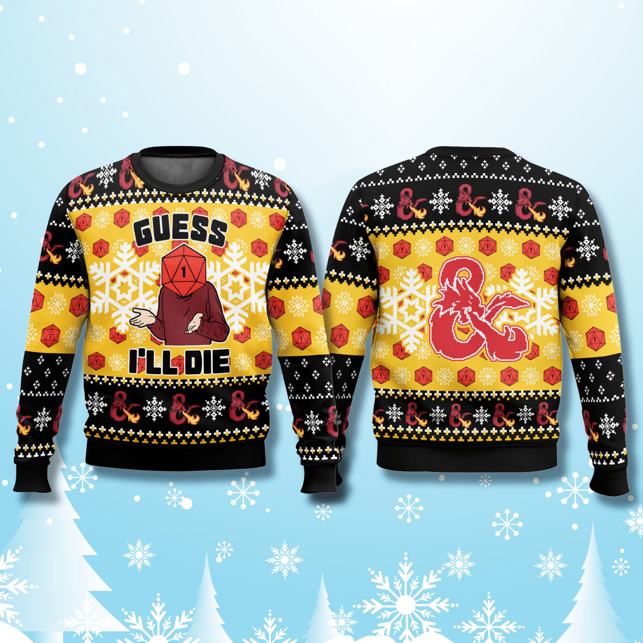 Dungeons and Dragons Guess I’ll Die Ugly Christmas Sweater – The Natural 1 of Holiday Cheer!