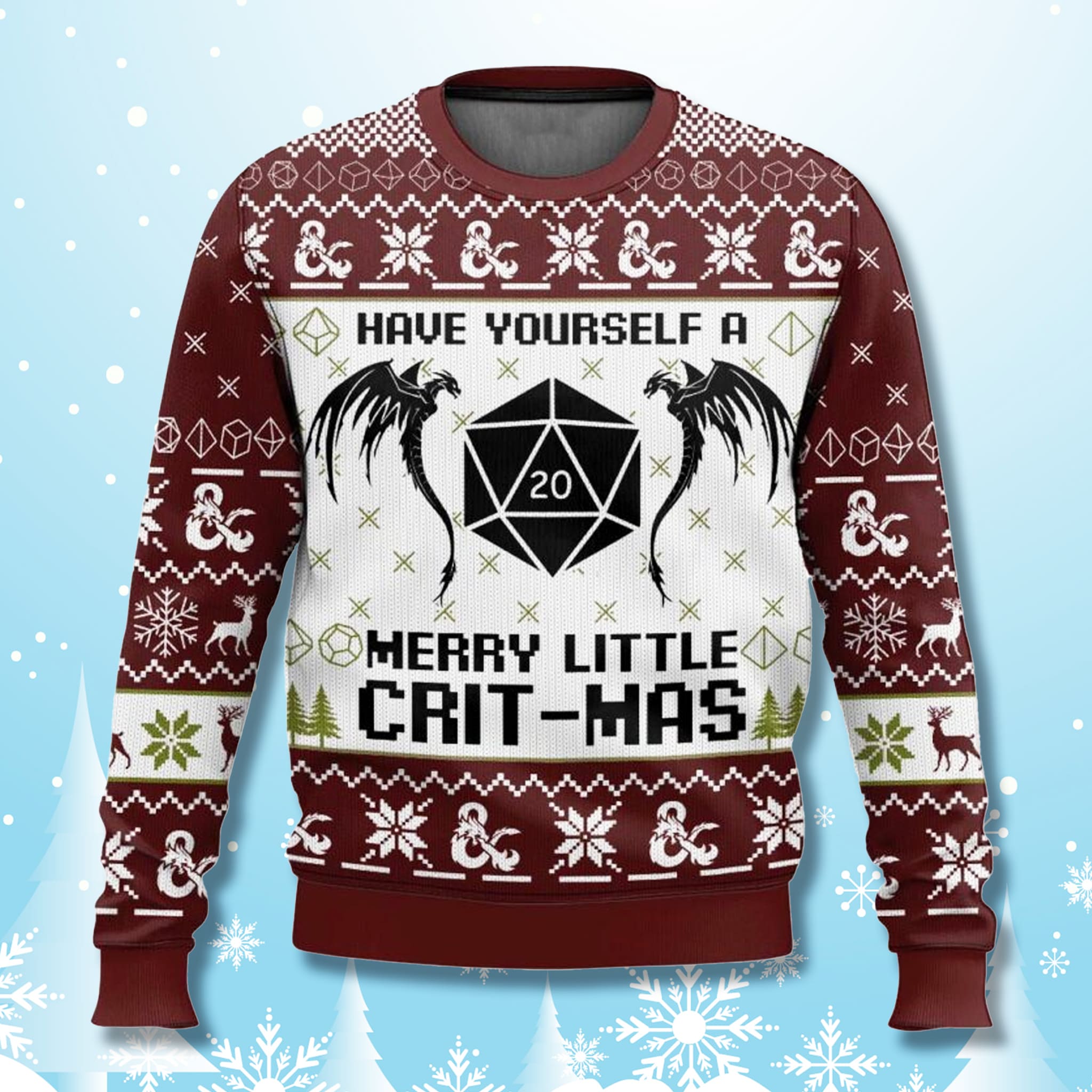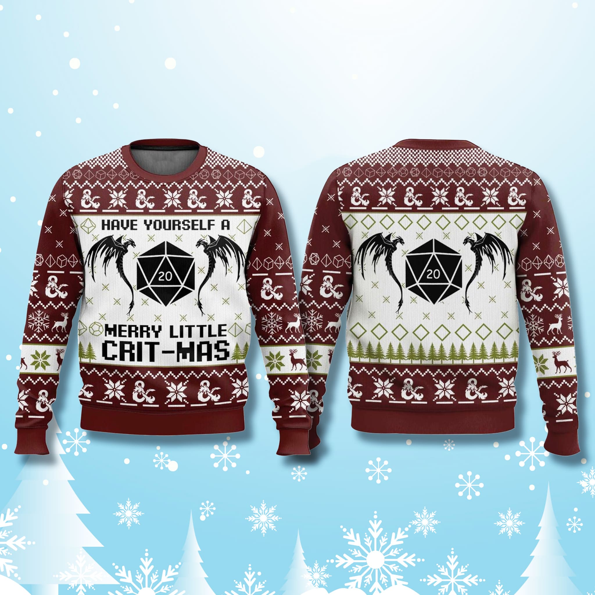 Dungeons and Dragons Roll a Natural 20 Merry Little Crit-mas Ugly Sweater – Guarantee a Critical Hit for the Holidays!