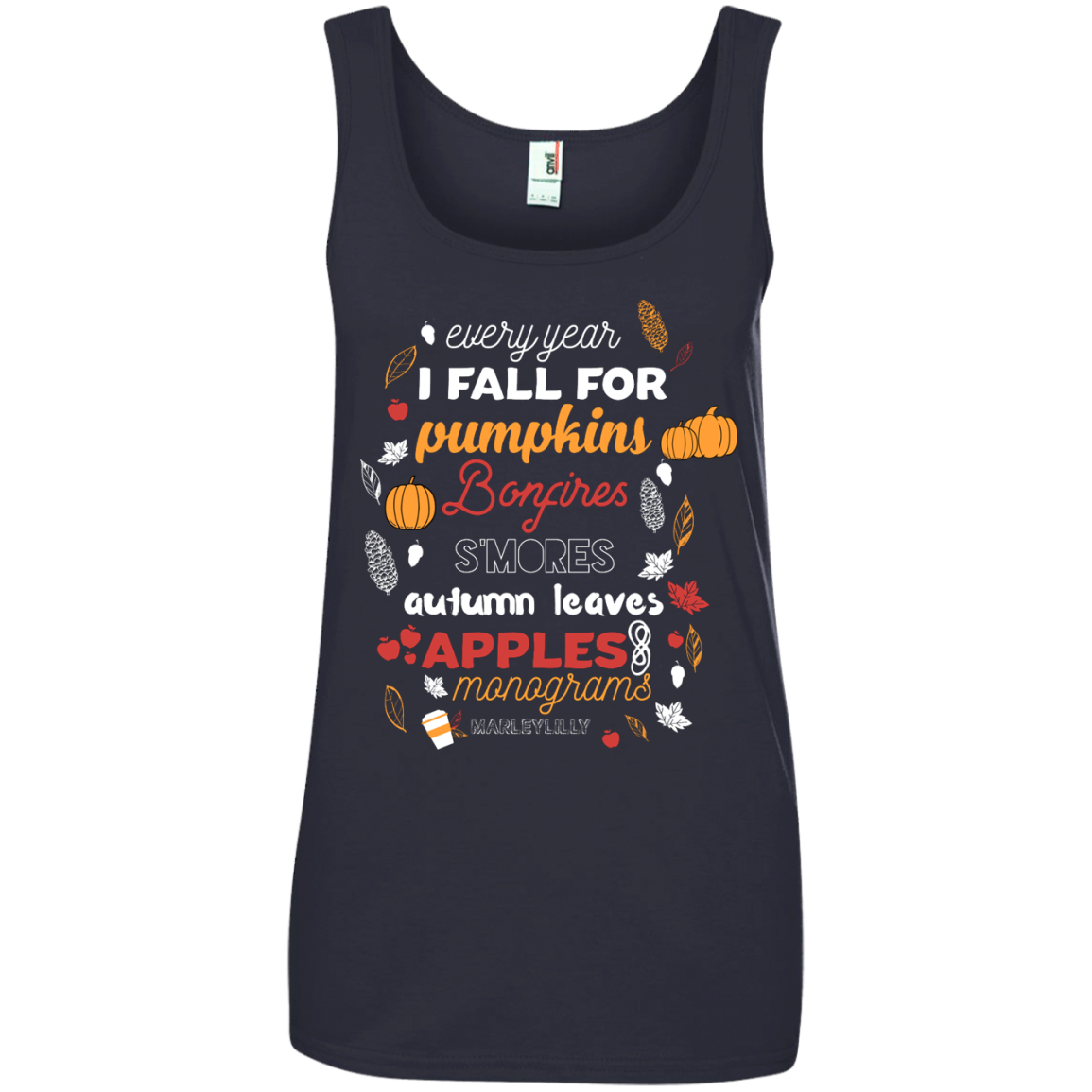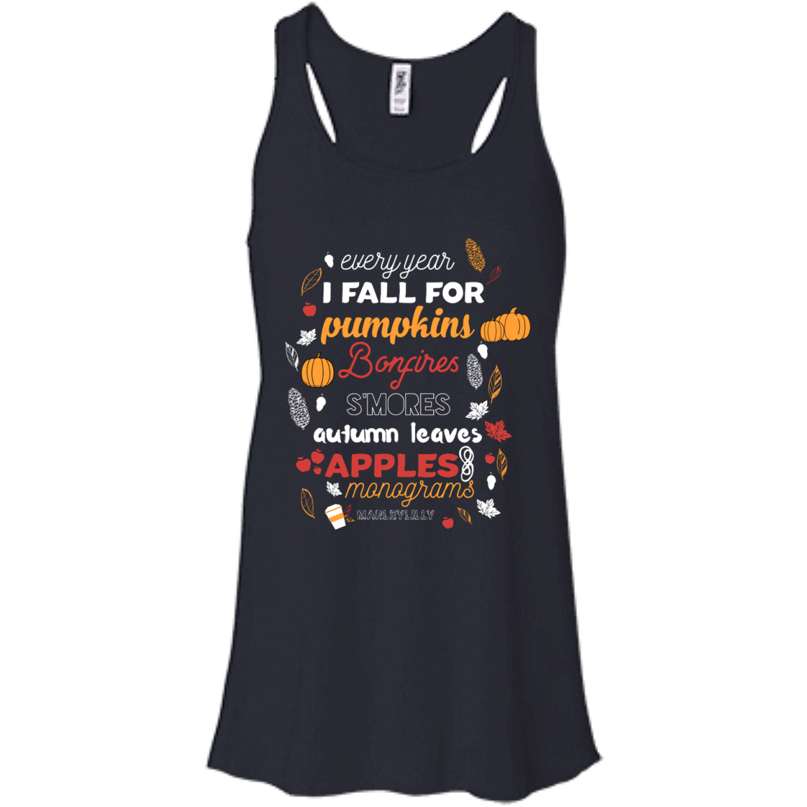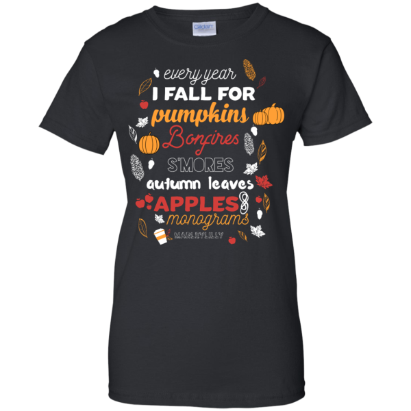 Every year I fall for pumpkins bonfires s’mores autumn leaves apples monograms marleylilly t-shirt, tank, hoodie