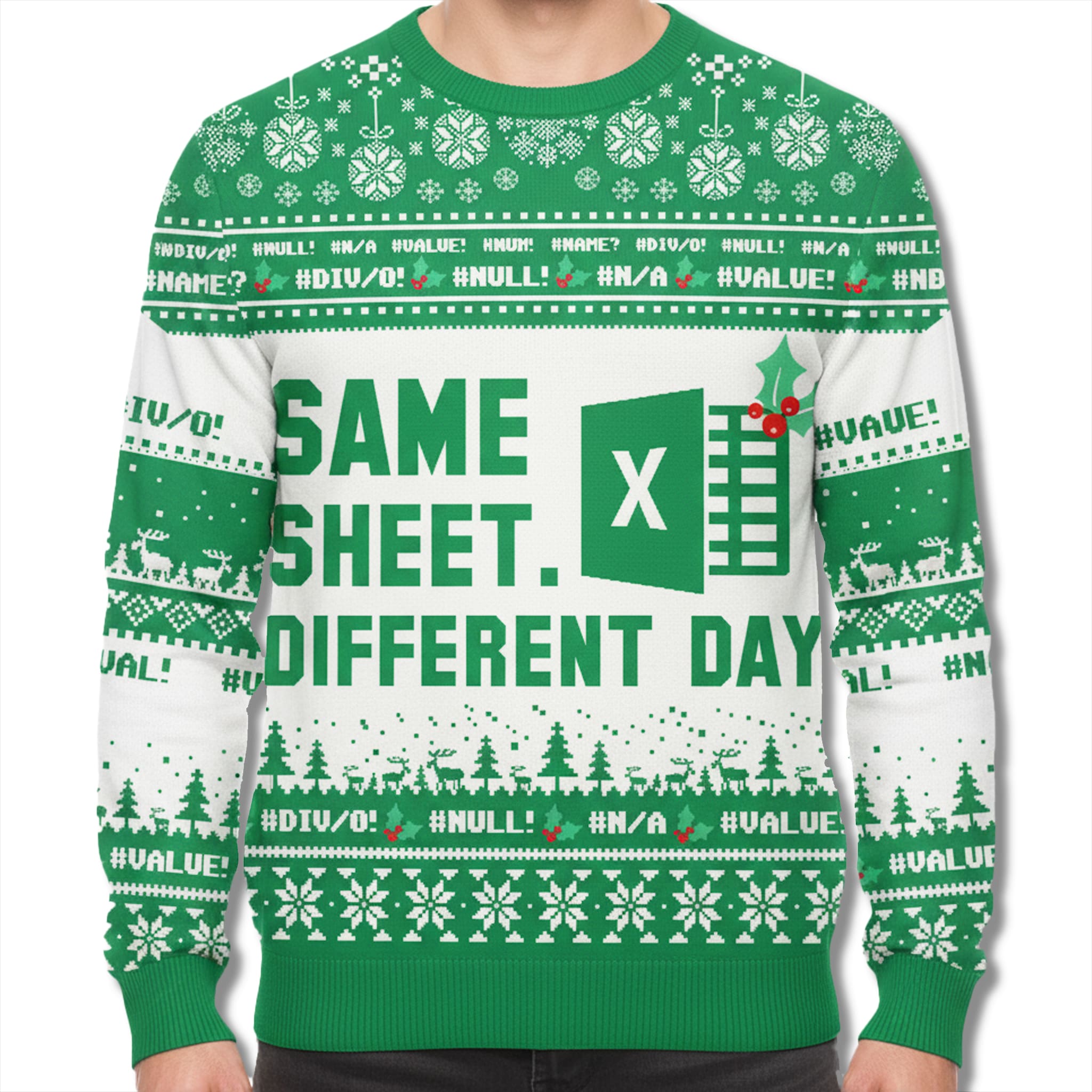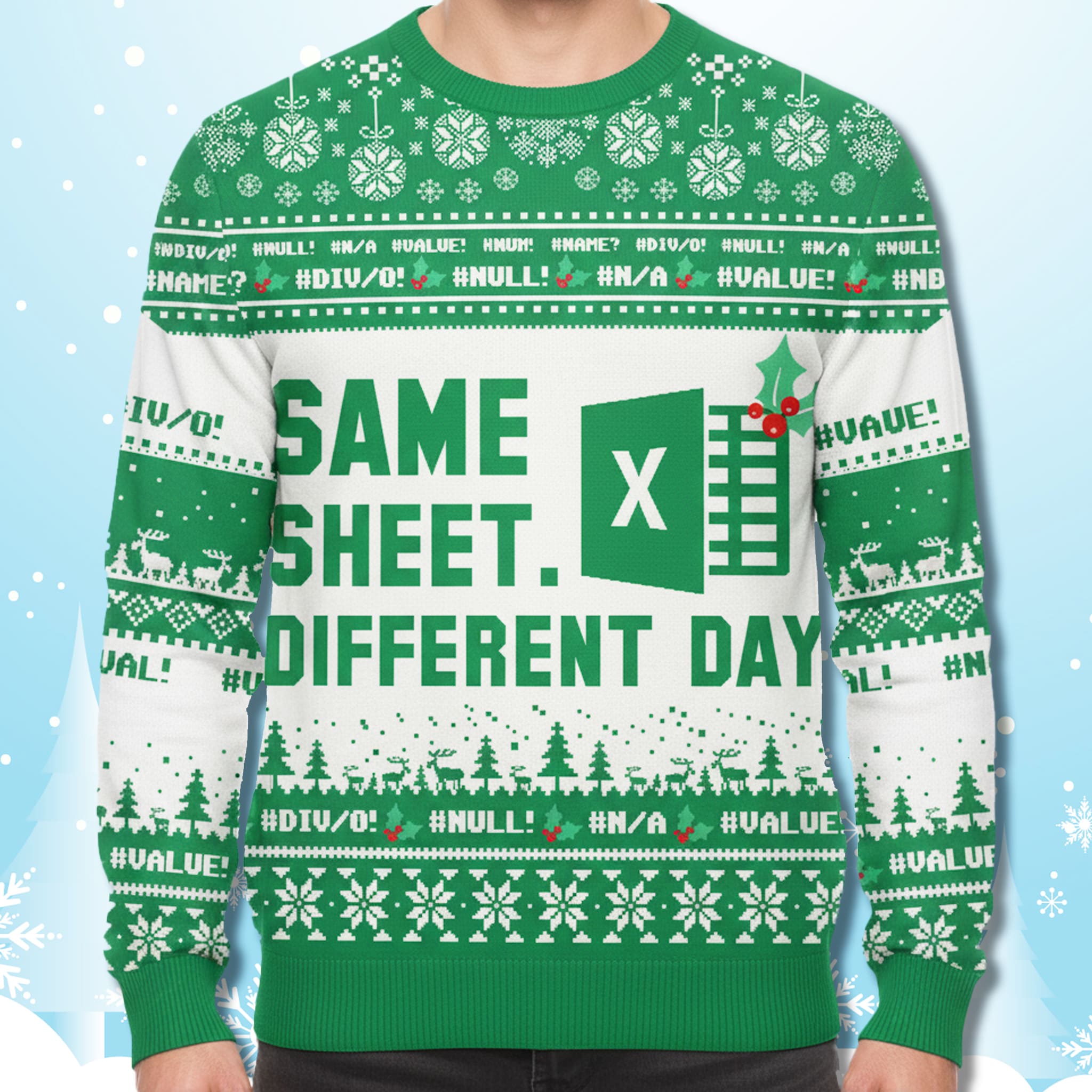 Excel Same Sheet Different Day Ugly Christmas Sweater – Office Humor for the Festive Season