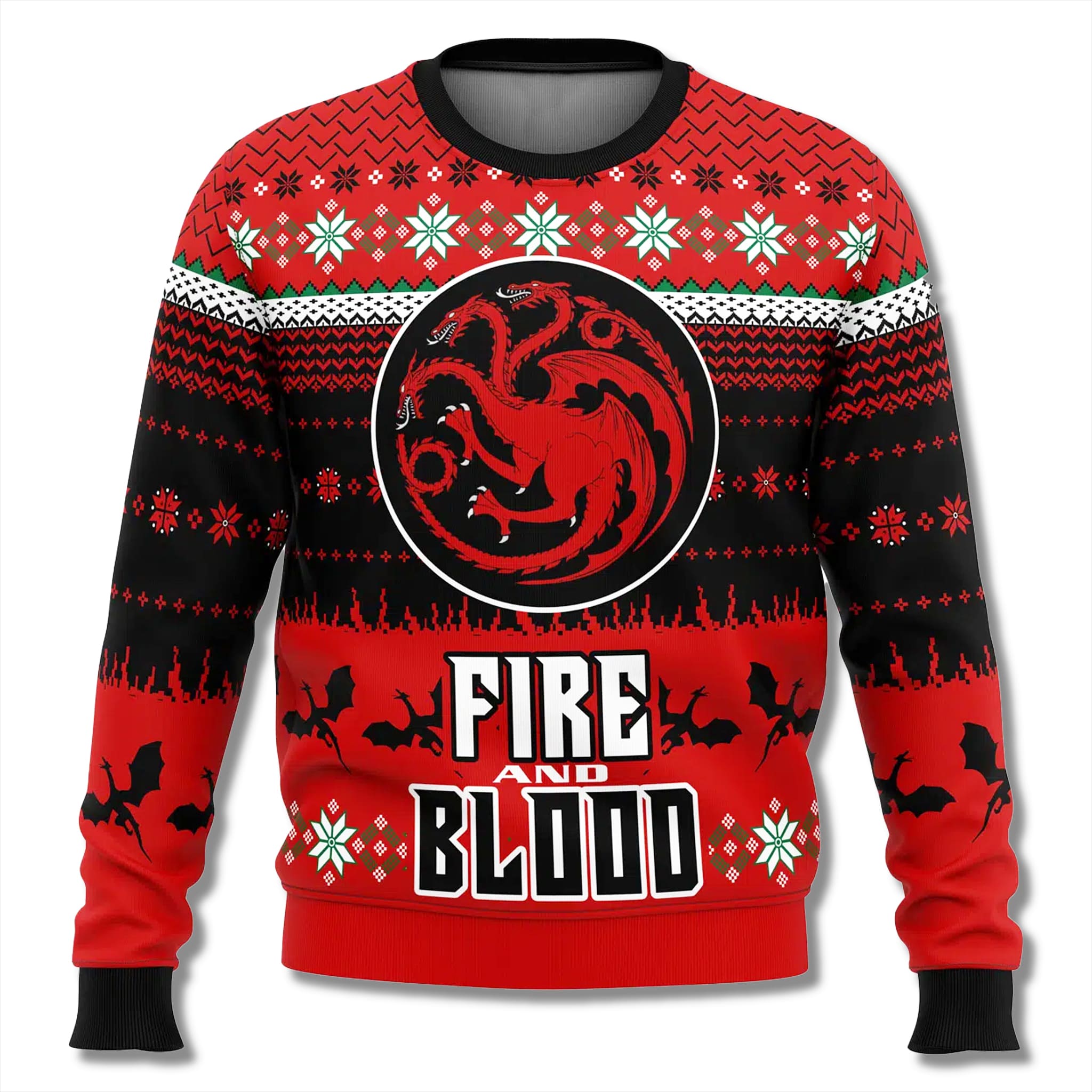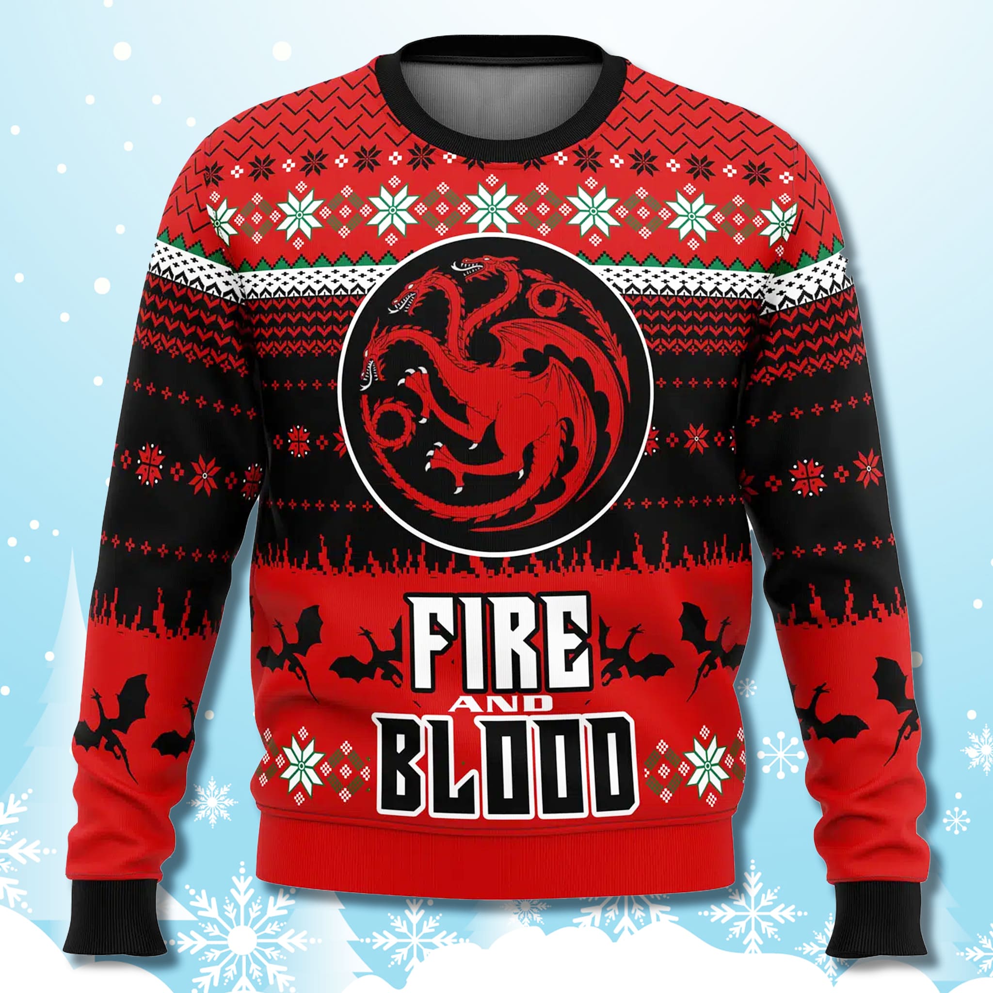 Fire and Blood Game of Thrones Ugly Christmas Sweater – Targaryen Rules This Christmas