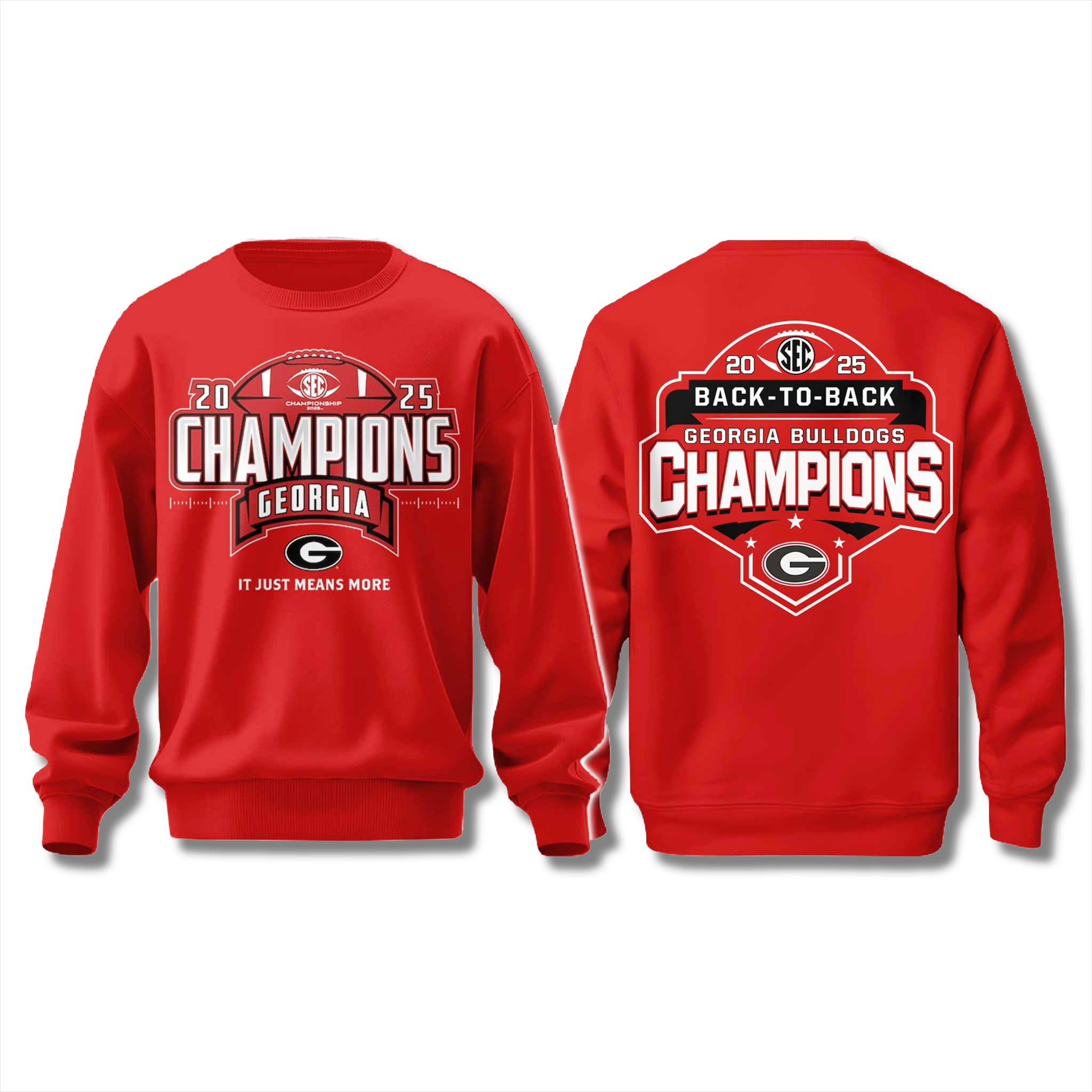 Georgia Bulldogs 2025 Back To Back SEC Champions Sweatshirt: The Red Fire Burns – Back-to-Back SEC Glory With the Spirit of “It Just Means More”!
