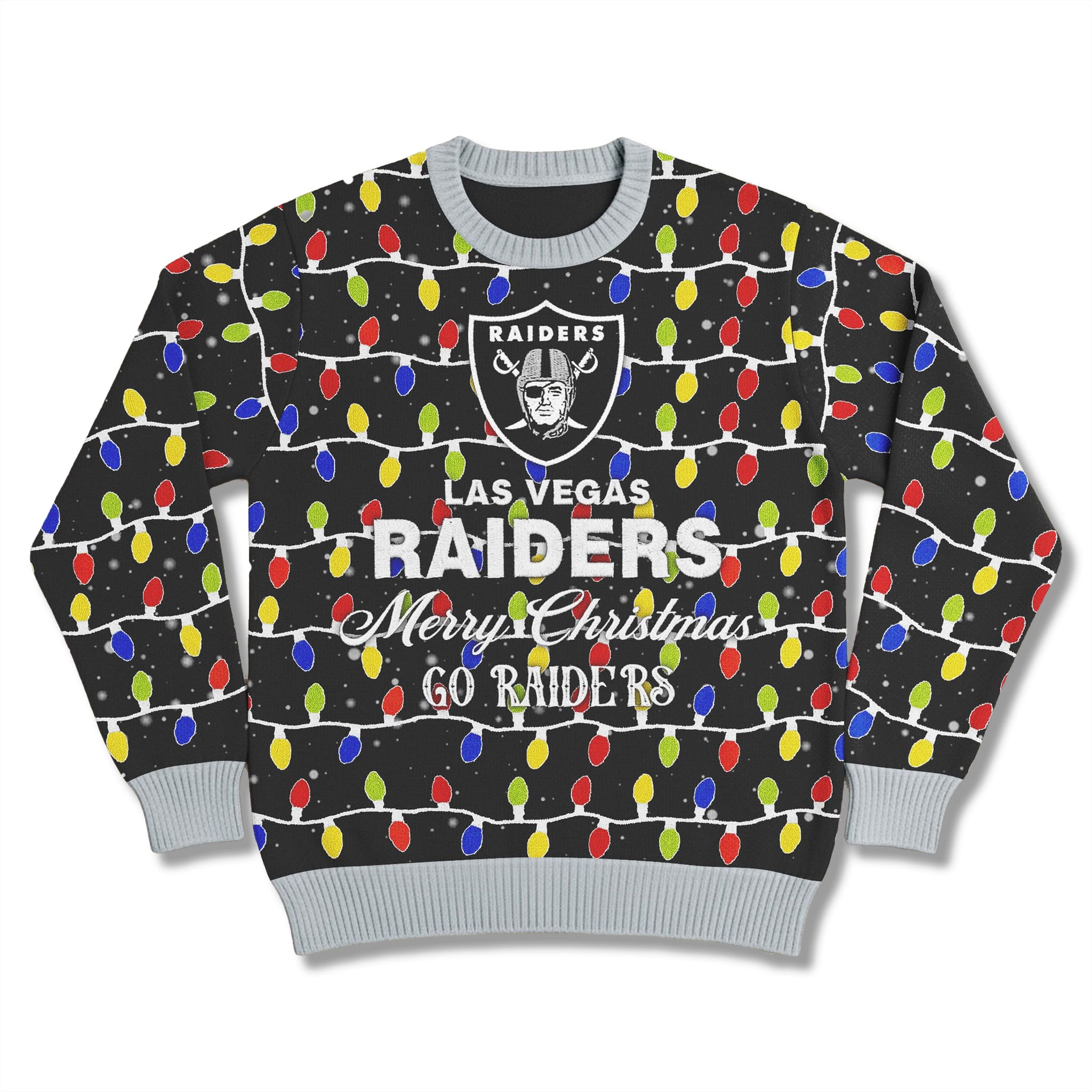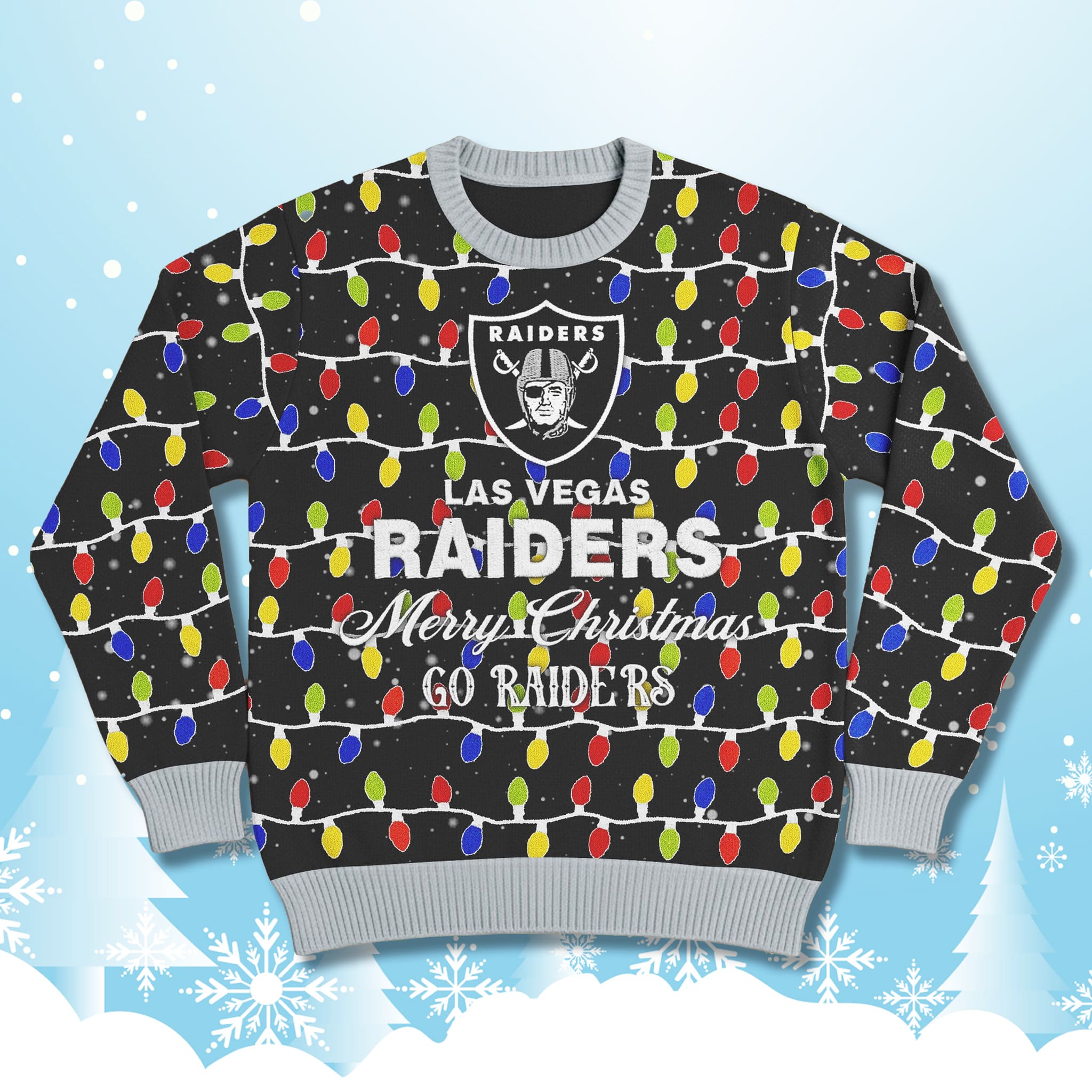Go Raiders Christmas Fairy Lights Ugly Sweater – Warm Christmas for Raiders Fans