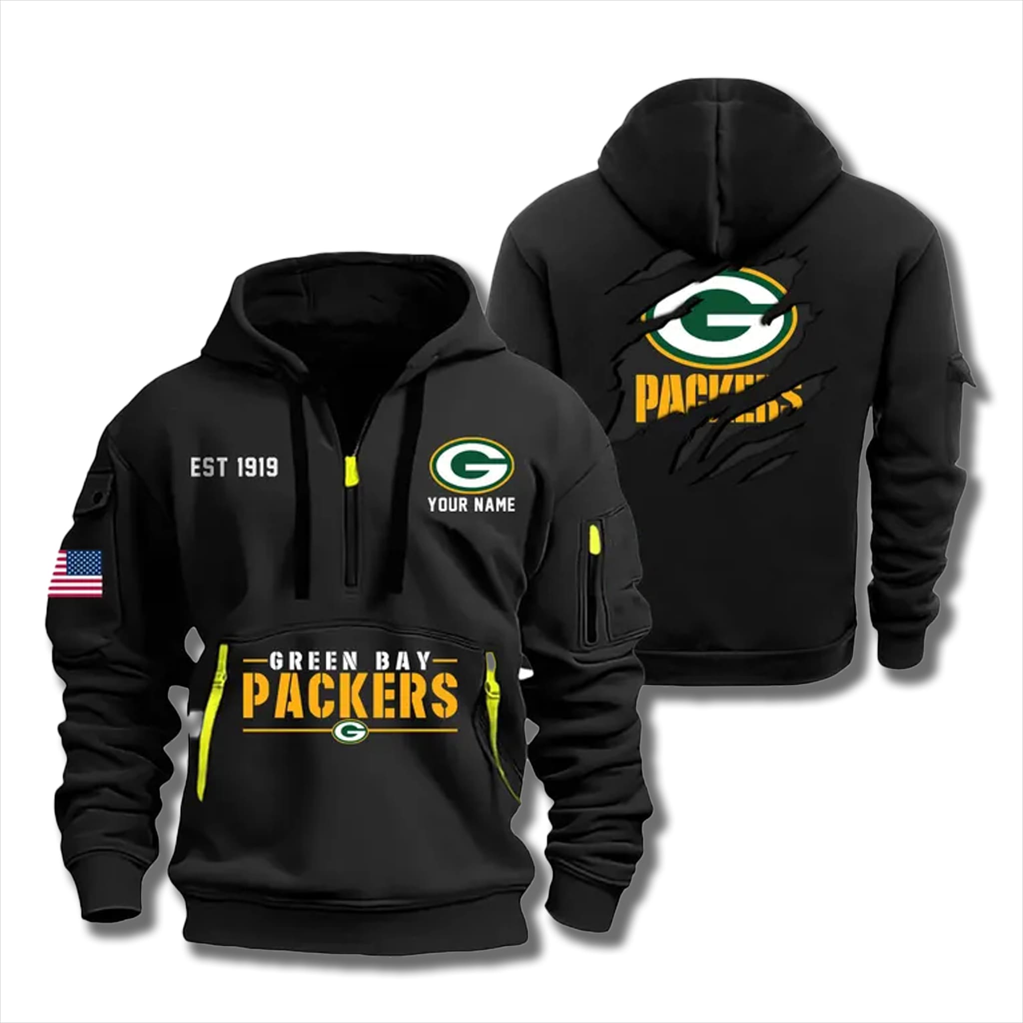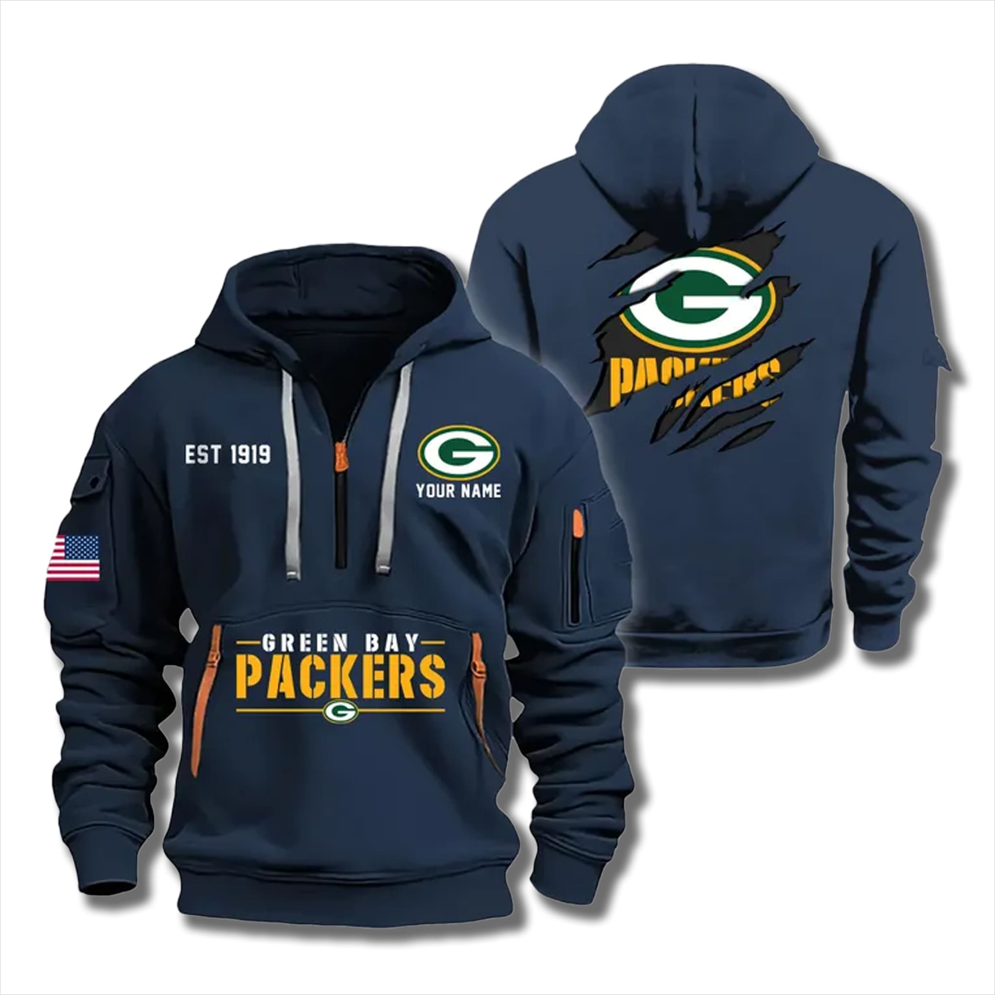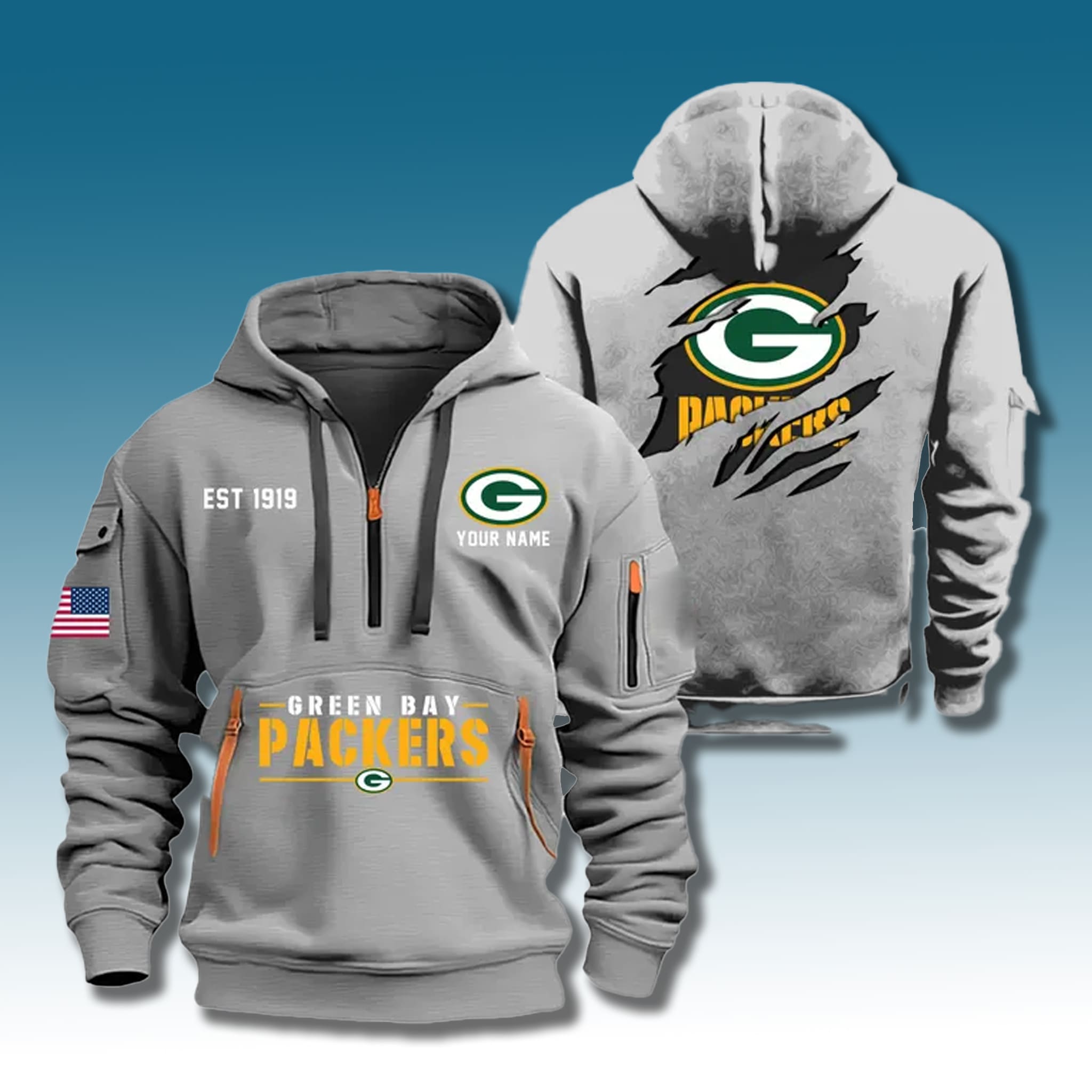 The Packers EST 1919 Quarter Zip Hoodie, with its finely embroidered “EST 1919,” classic logo, and personalized name option, is the perfect way for Packers fans to honor the team’s storied championships and the eternal “Titletown” spirit – a warm item that lets you show your passion whether you’re sitting in the freezing Lambeau Field stands or watching a playoff game at home.