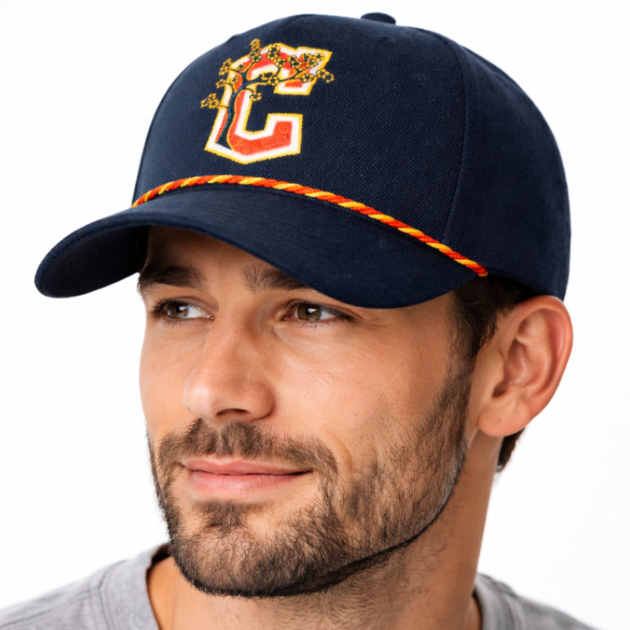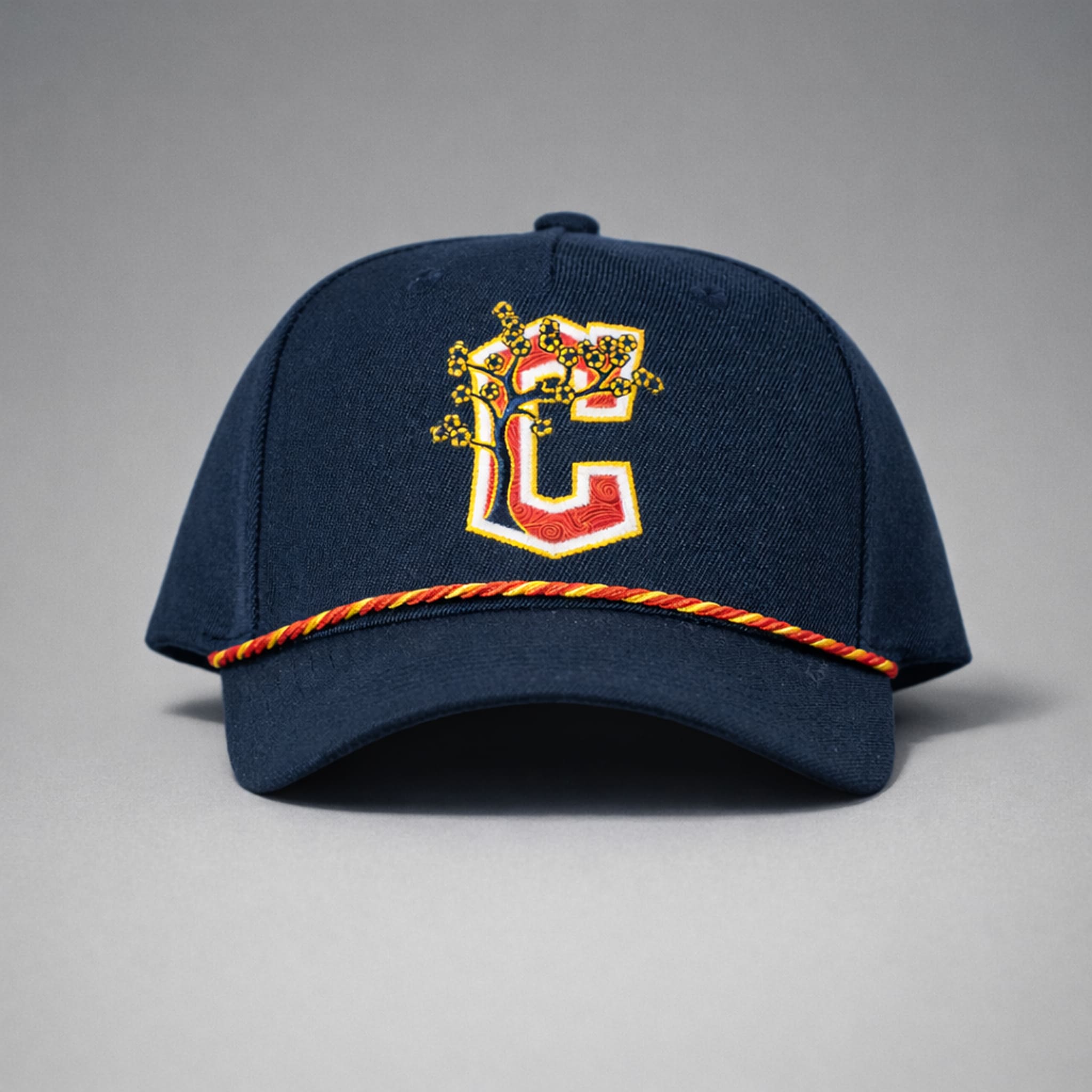 The cap stands out with a culturally inspired design: the iconic “C” logo of the Guardians is creatively stylized with bright red and yellow cherry blossom patterns woven through the letter, highlighted with bold gold trim and intricate traditional details, delivering a perfect fusion of team loyalty and the colorful spirit of AAPI pride.
