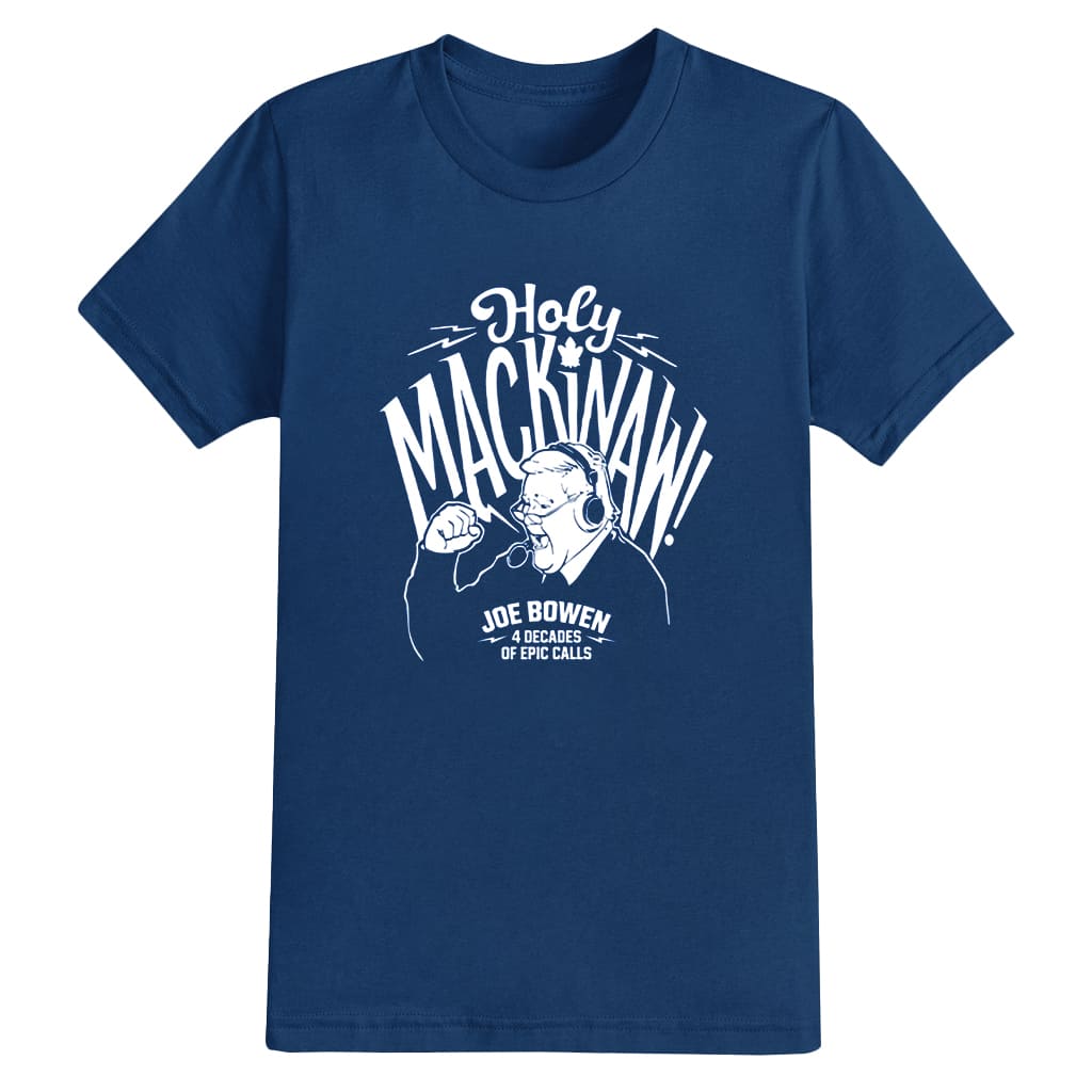 Celebrate the electrifying voice of Toronto hockey with the Holy Mackinaw Joe Bowen 4 Decades of Epic Calls Shirt. Honoring broadcaster Joe Bowen’s 44-year legacy since his 1982 debut, this tee immortalizes his iconic “Holy Mackinaw!” catchphrase – a family-inspired exclamation that’s punctuated over 3,800 games of heart-pounding action. As Bowen gears up for his 2025-26 farewell season, this shirt is essential for fans.