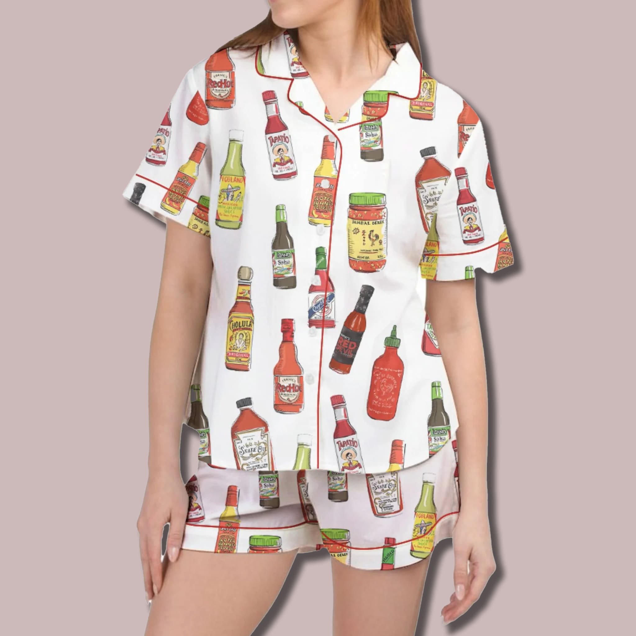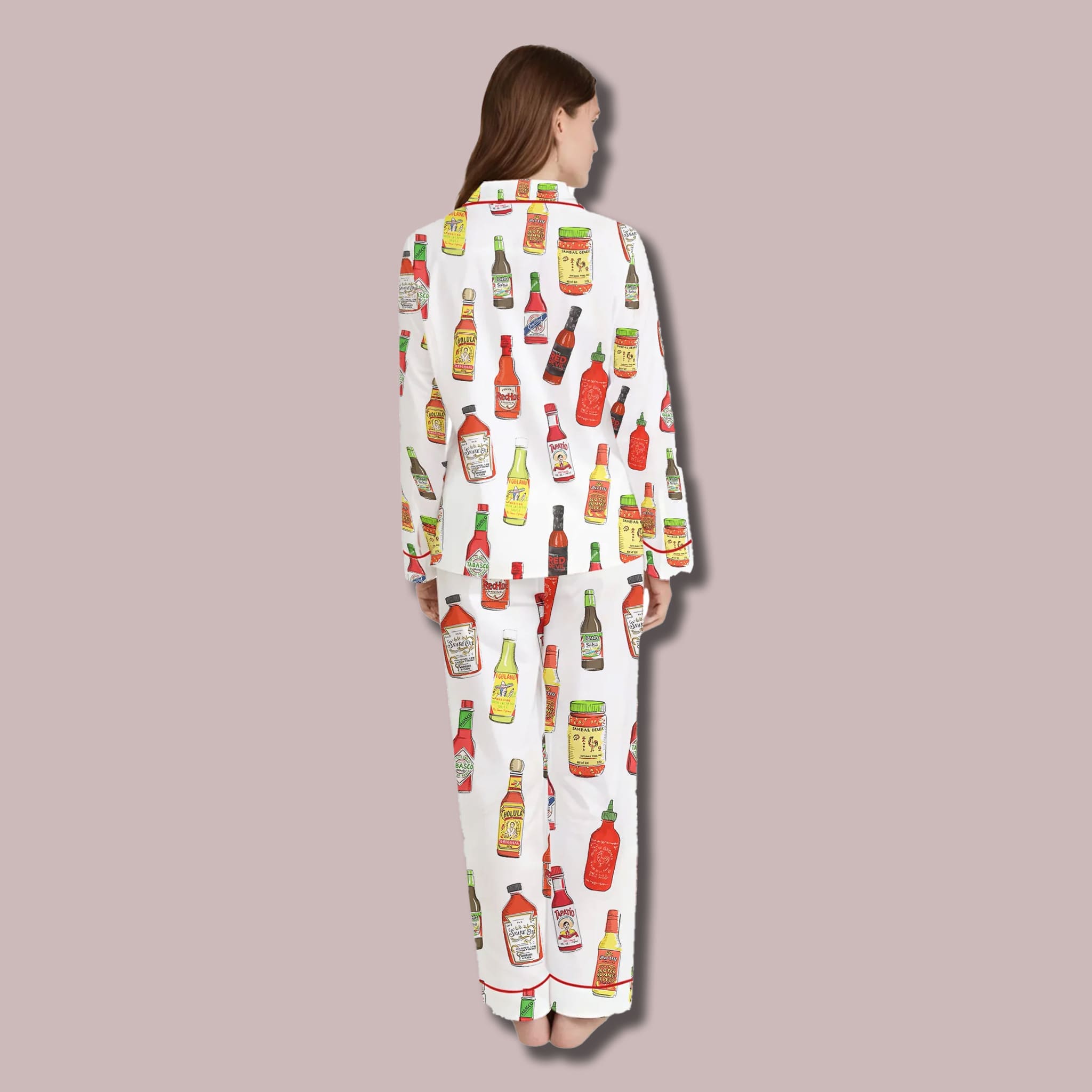 Hot Sauce Silky Satin Pajama Set | Spicy & Fun Foodie Sleepwear